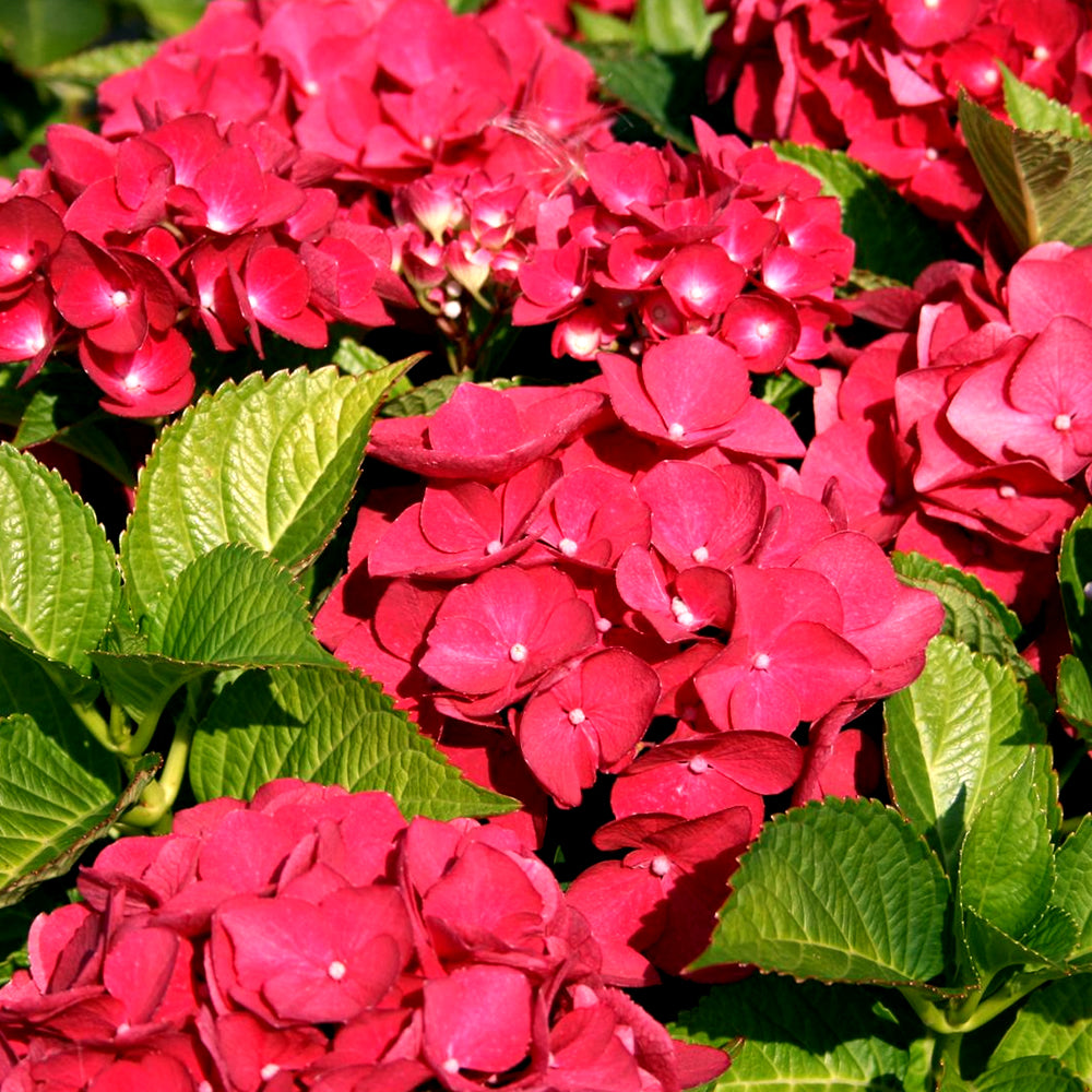 ā€œTeller Redā€ is one of the best red-coloured Hydrangeas. In order to best achieve these red colours, plant in more alkaline soils. As such, this plant will produce vibrant shades of red-pink flowers, which as a bunch ranges from 15 to 25 cm in diameter.