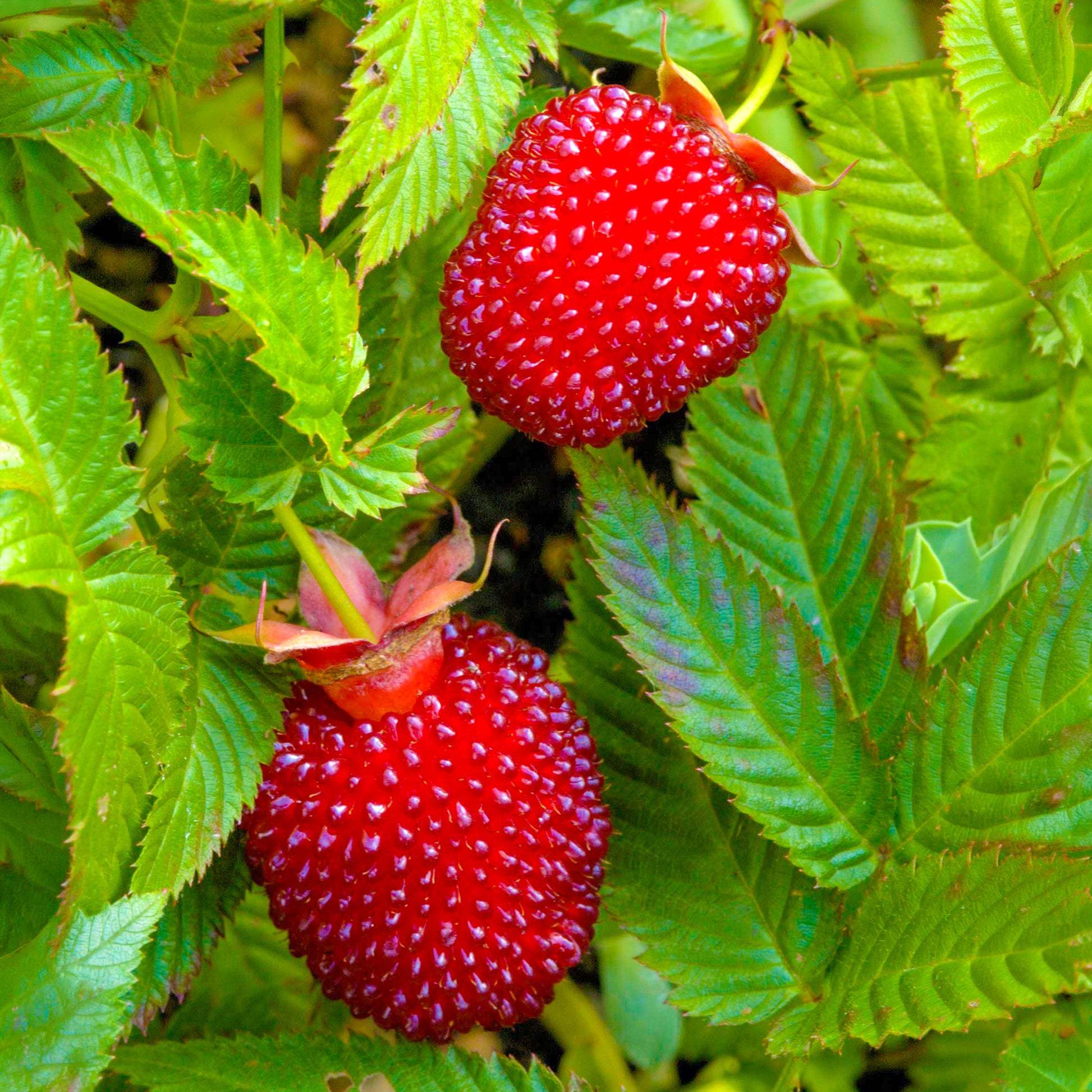 The Japanese Sweet Balloon Berry, also known as the Strawberry-Raspberry, is a hardy, thorny shrub that produces large, red berries with a sweet and tangy flavour. Originating from Japan, this unique plant combines the qualities of strawberries and raspberries, making it an excellent choice for fresh eating, cooking, and preserves. The shrub blooms with large white flowers in the spring, followed by a harvest of flavourful berries from late summer into autumn.