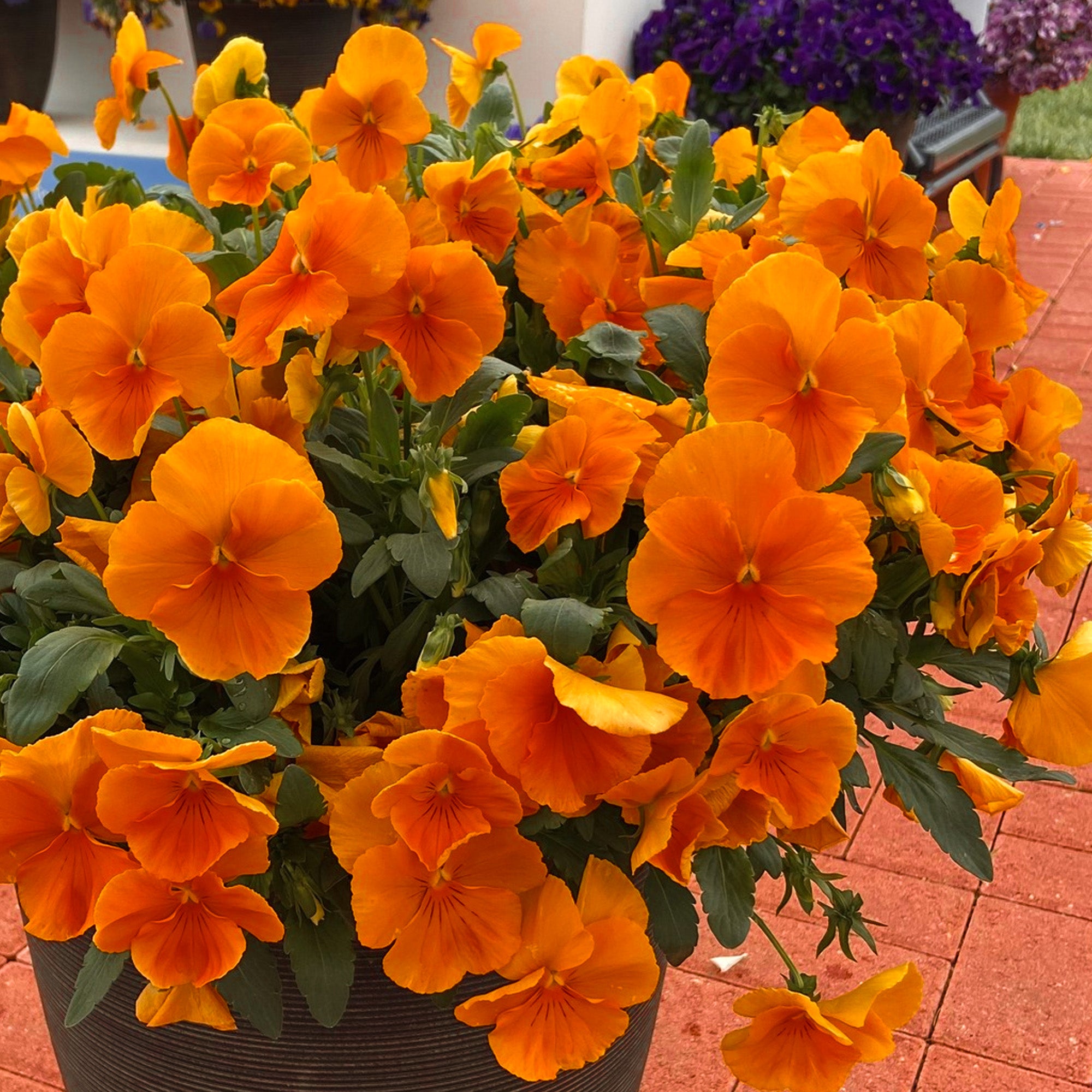 Add an eye-catching splash of bold colour to your garden this winter with the Jumbo Deep Orange Winter Pansy. Boasting dark orange petals with white edges and a white eye, this Pansy brings contrast and character to borders, containers, and hanging baskets when most plants are winding down for the year. Its compact growth and vibrant blooms make it a reliable choice for brightening up patios and outdoor spaces through the colder months.