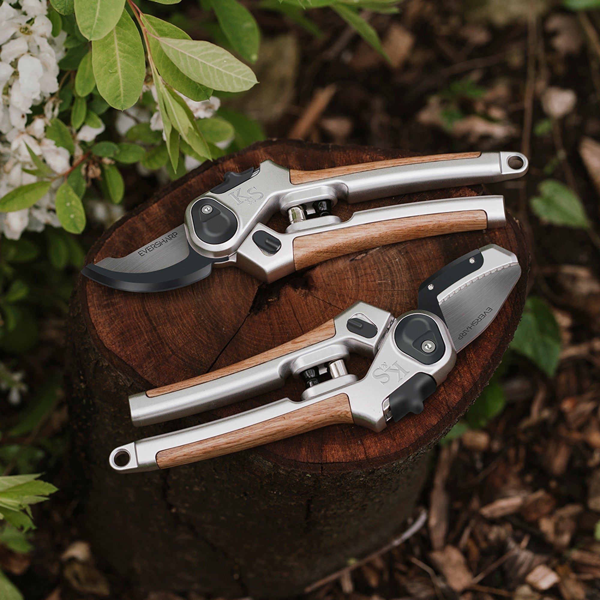 The ergonomically developed wooden handle is made from strong ash wood and is comfortable to use for both left- and right-handed gardeners. The handles can also be adjusted to fit the size of the user’s hand. In fact, as the ash is somewhat pliable, it gradually moulds to the shape of your hand, making it more comfortable with every use.
