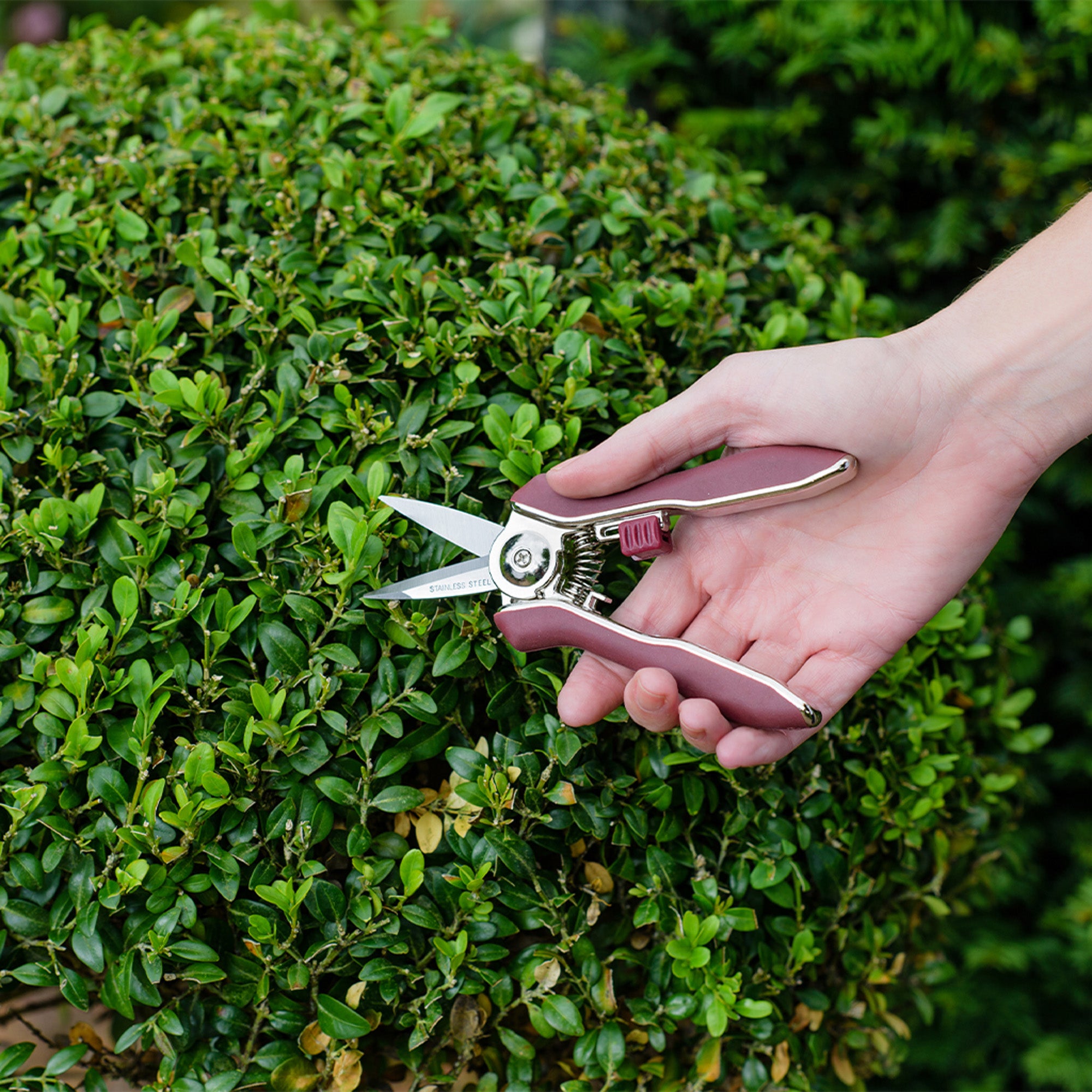 The high quality carbon steel blades make light work of pruning, shaping and deadheading and feature a micro-tip for precision cutting. The blades are non-stick and have a cutting diameter of 6mm. A simple thumb operated locking mechanism allows for safe storage.