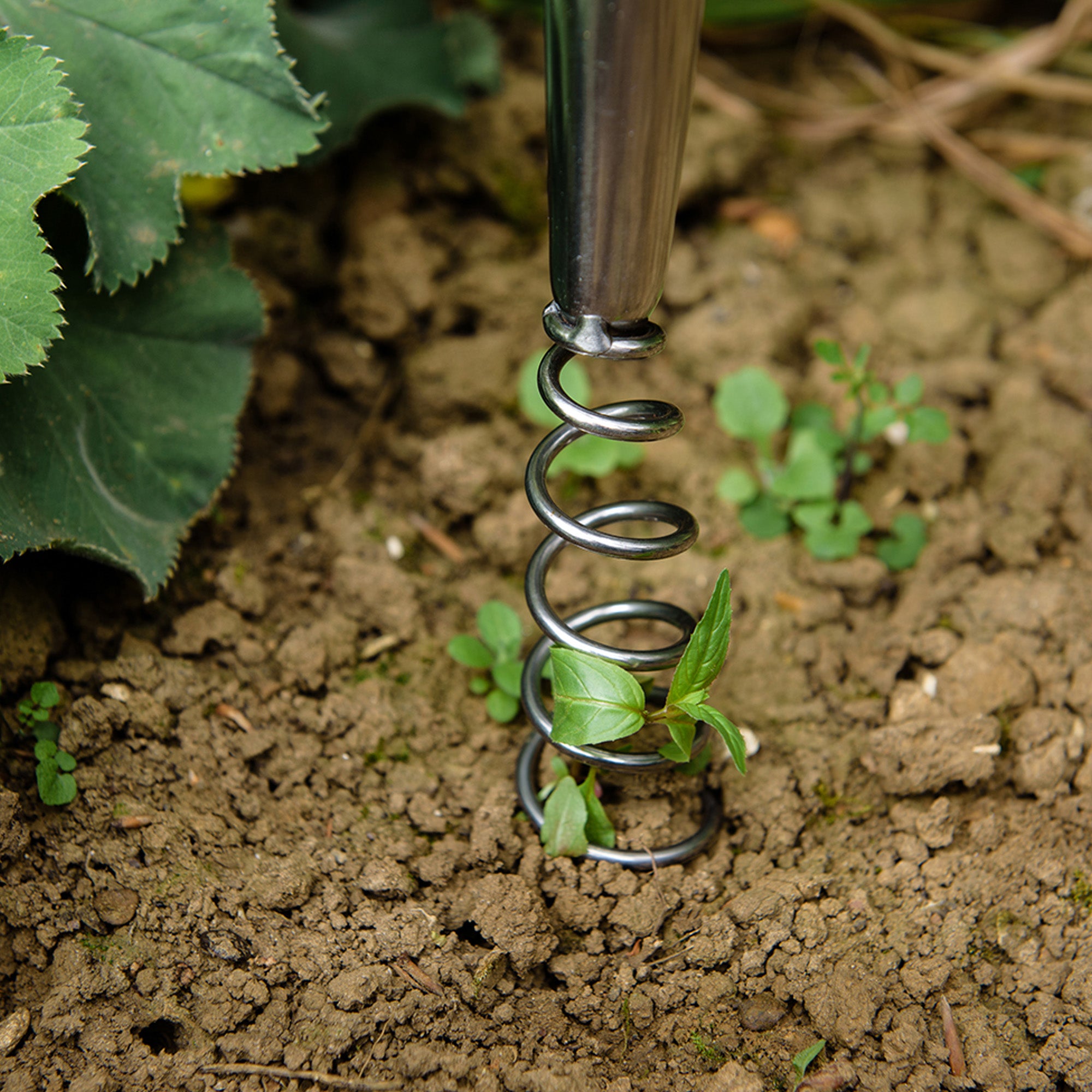 The rust resistant, stainless steel corkscrew tool head easily enters the ground, and will slowly wrap around the weed to pull it from the ground.