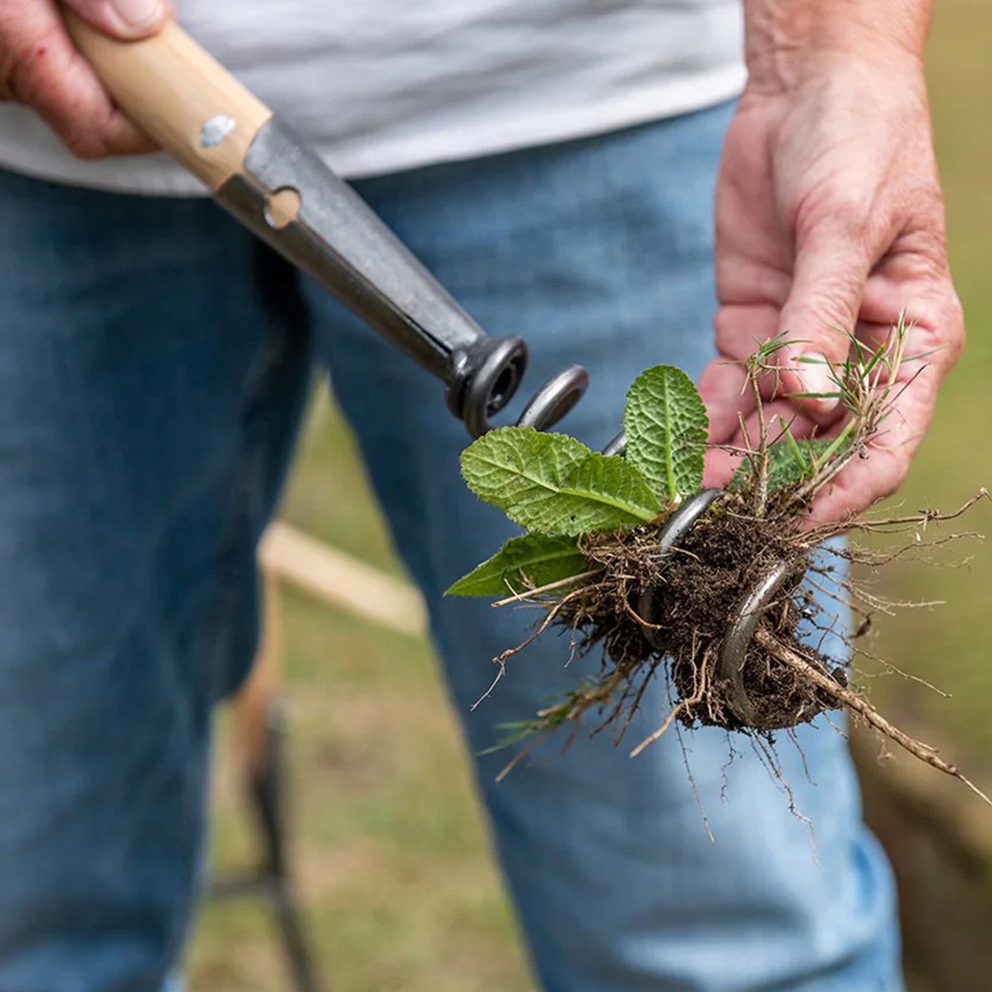 This tool is perfect for tap rooted weeds like dandelions, and the ash wood, T-shaped handle makes for easy turning and comfortable usage.