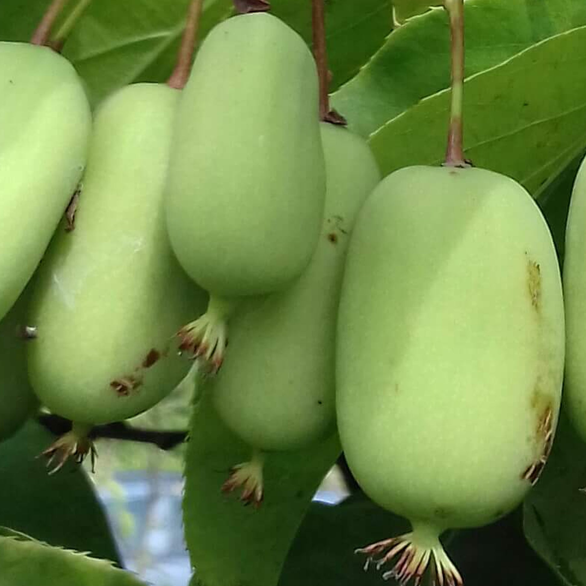 Actinidia arguta Jumbo is a hardy, compact, climbing vine variety that bears delicious fruit. Its attractive, creamy-white flowers are a key feature of the plant, alongside the large fruit it can produce - the largest of all Actinidia varieties. When paired with a male arguta pollinator, the plant will produce delightful kiwi fruit that is both tasty and smooth-skinned. This delightful produce does not require peeling before consumption. Due to its disease and weather tolerant capabilities, this plant can perform in the best and worst weather conditions. It can also be planted in almost any type of soil, providing that it is kept moist and well drained through regular watering. When positioning the plant, partially shaded areas are fine, but it will thrive best when exposed to full sunlight.