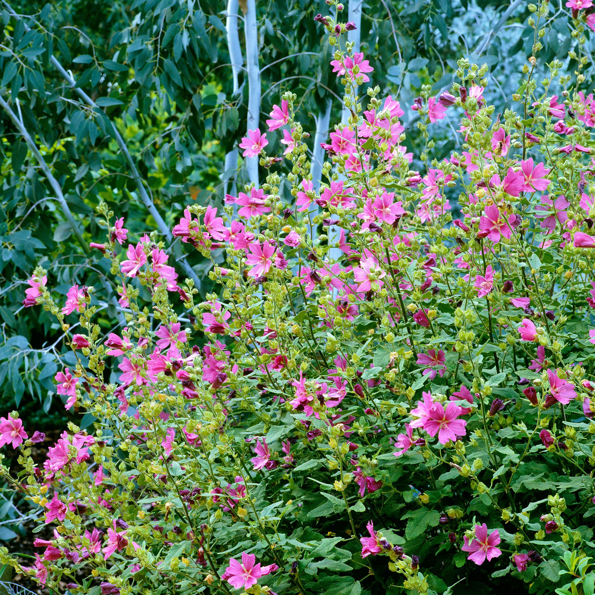 This plant is similar to others in the Lavatera group, as once it is established, it does well in low moisture areas and can tolerate drought to a certain extent. Heavy pruning down to about 30 cm is advisable in the late spring in order to encourage the growth of new flowering stems.