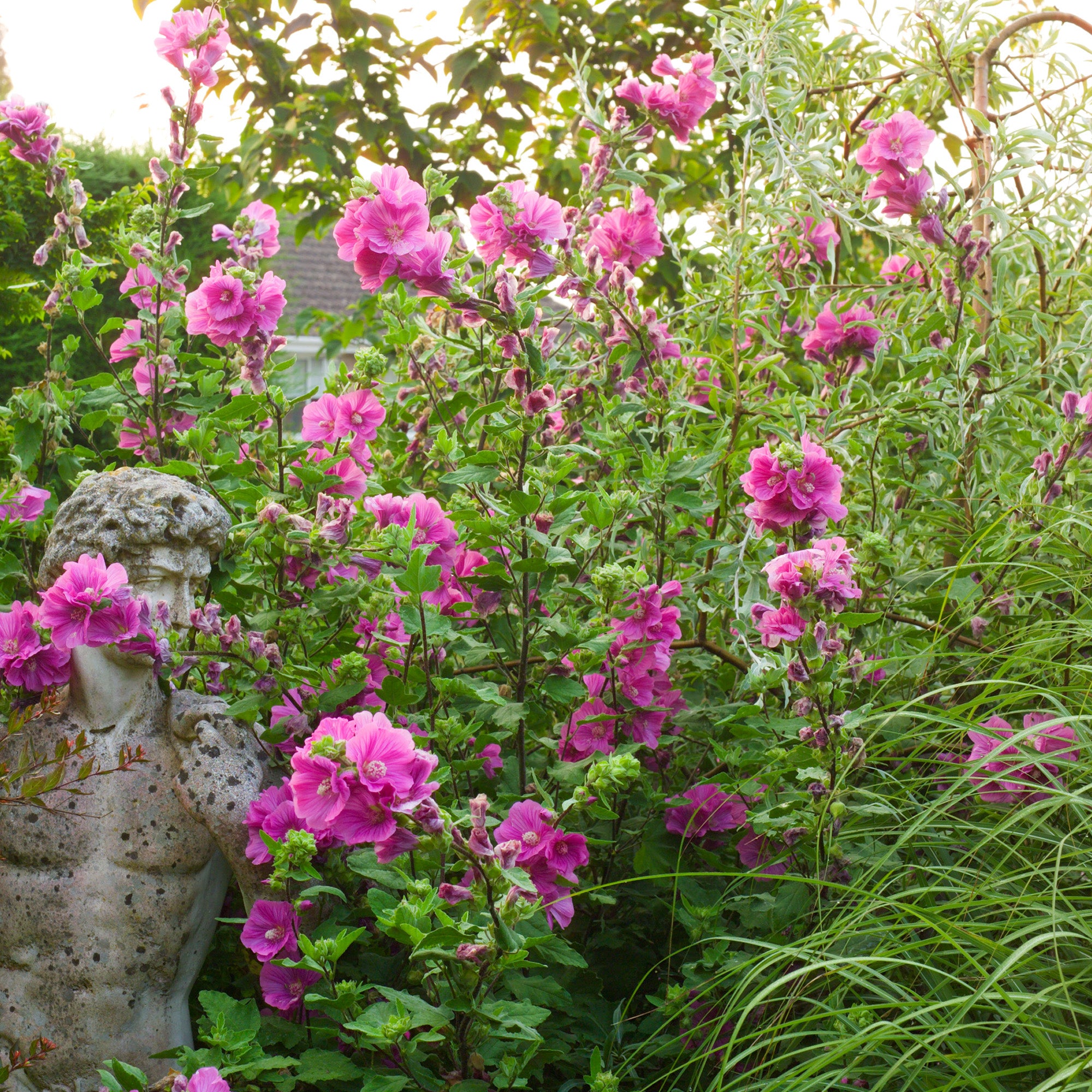 Plant Lavatera in well-drained soil in a sunny spot. Dig a hole twice as wide as the root ball, place the plant, and backfill with soil. Space multiple plants at least 90cm apart to allow for their bushy growth. Add compost to the soil for extra nutrients.