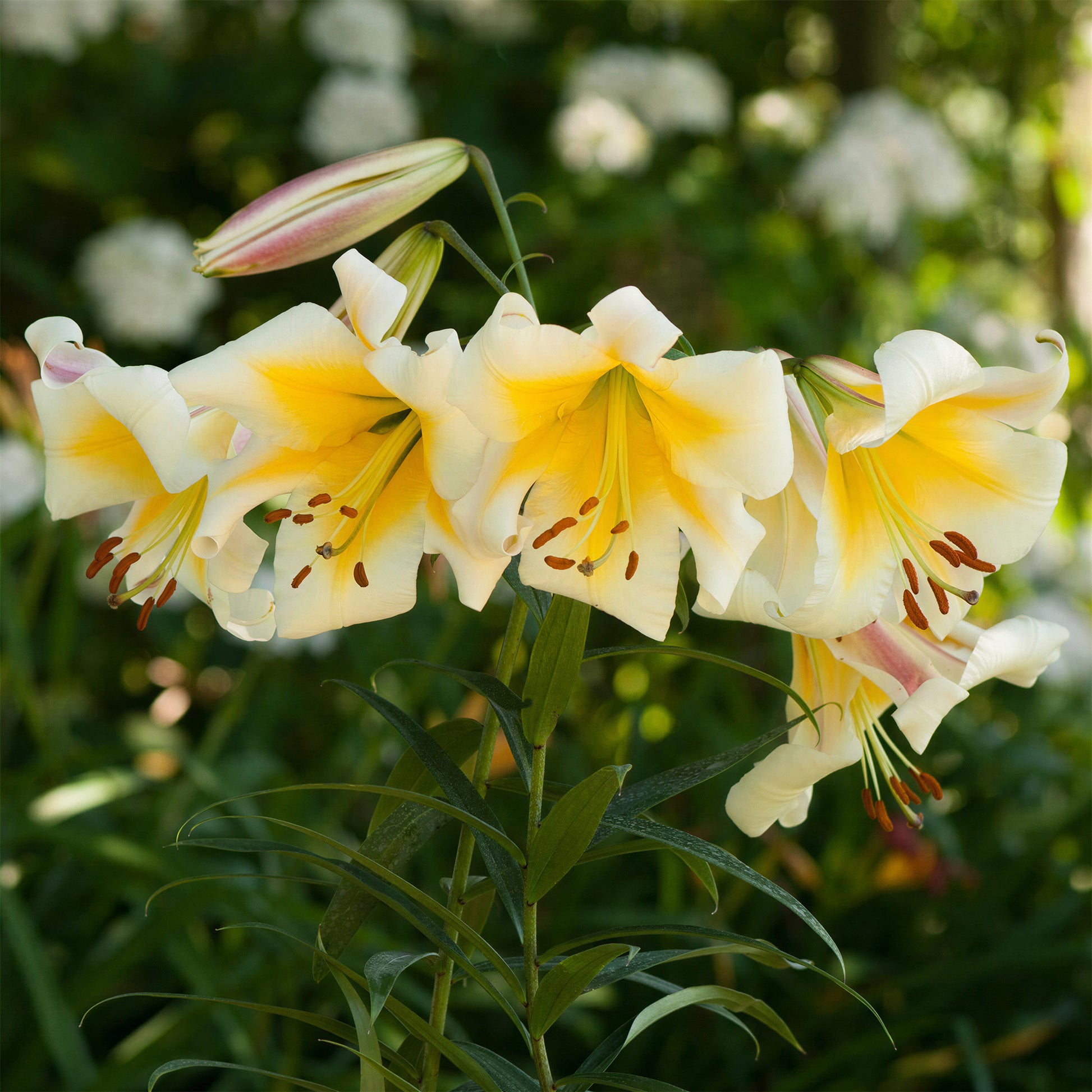 Lily Skyscraper Miss Peculiar brings a playful burst of colour and height to the garden, rising on tall, sturdy stems that naturally draw the eye. The large blooms open in an unusual blend of white, yellow and pink, giving each flower a cheerful, expressive look that stands out beautifully against summer foliage. Their open, nectar rich flowers attract bees and butterflies, adding gentle movement and life to the display. Whether placed at the back of a border or used as a charming feature in a container, these bulbs offer height, personality and a wonderfully distinctive finish.