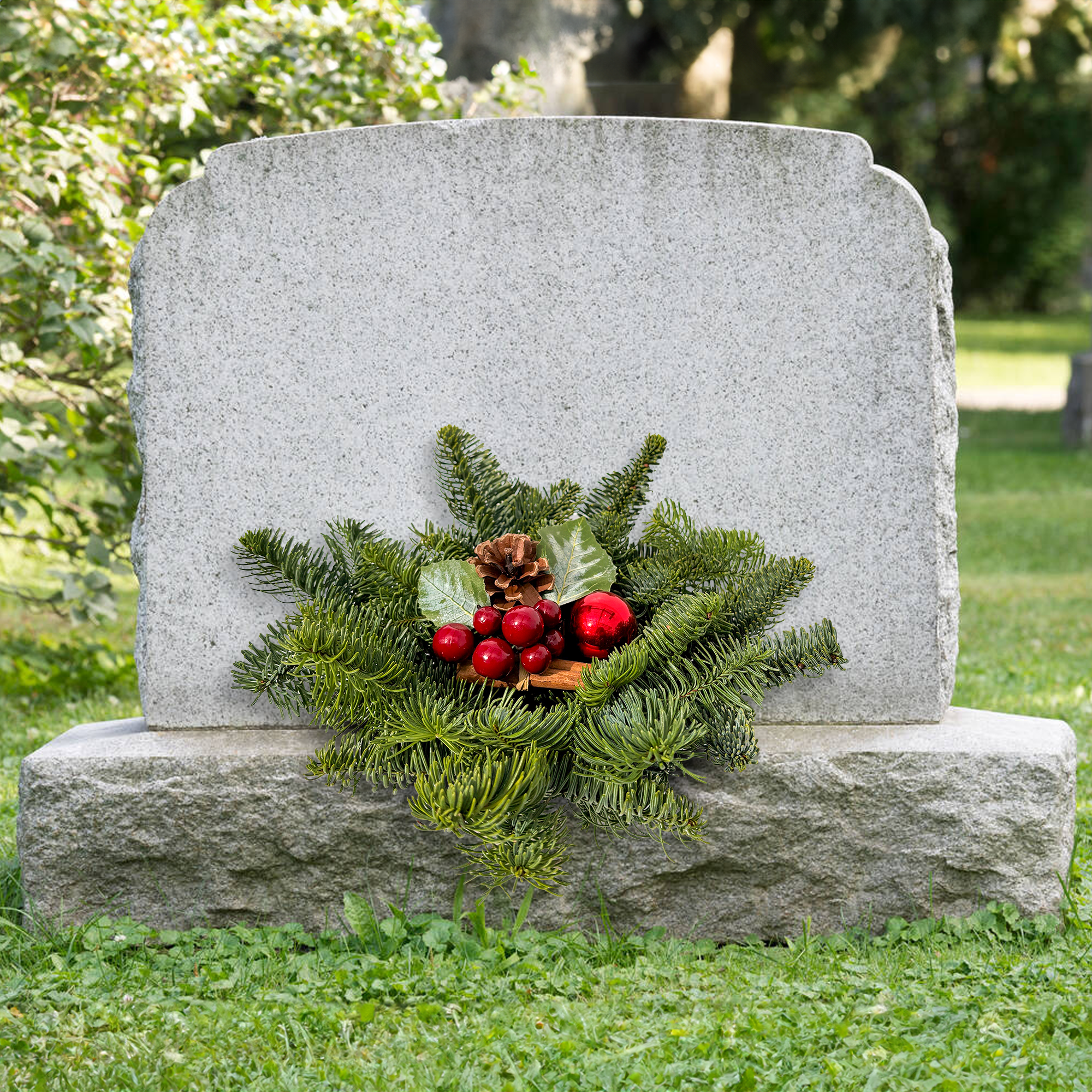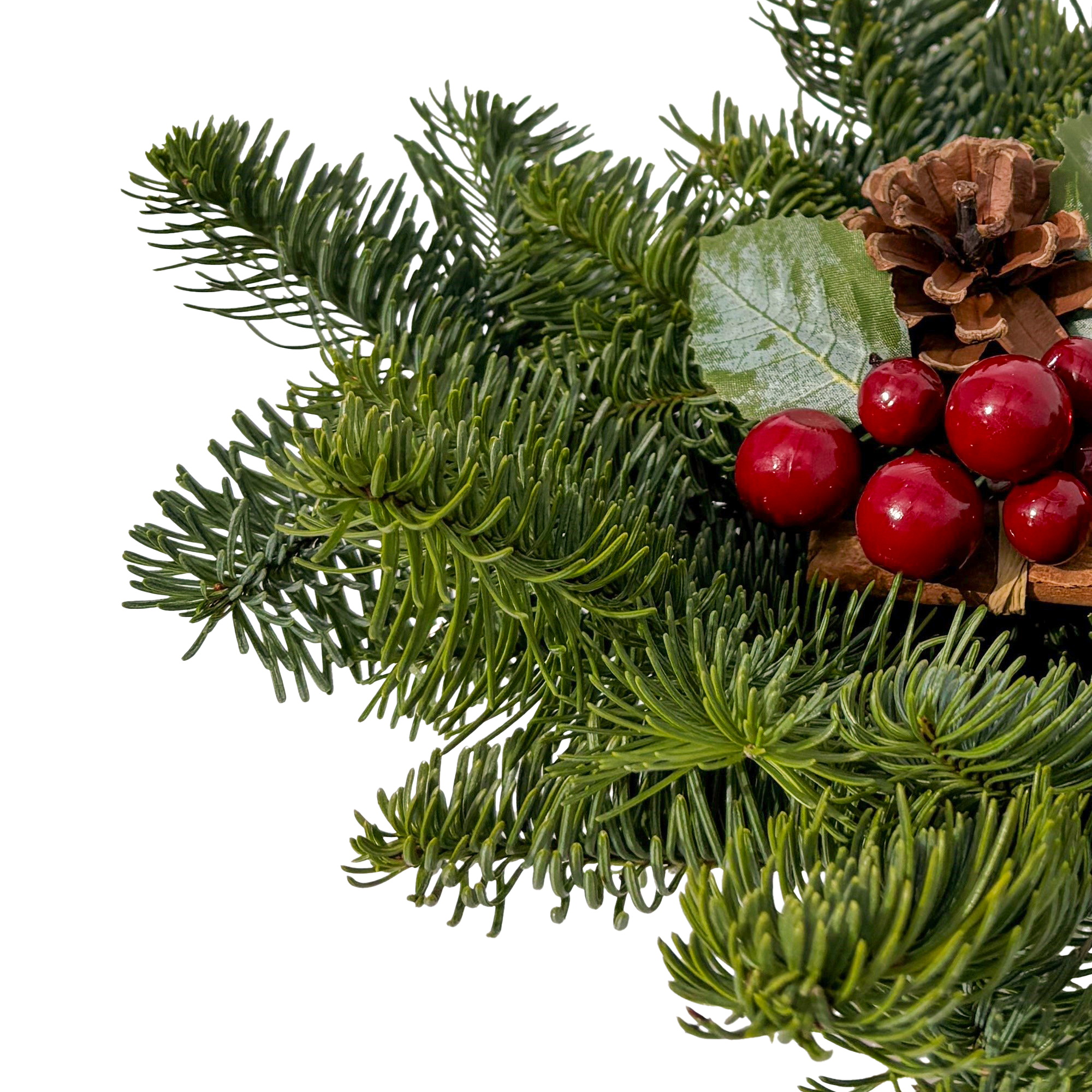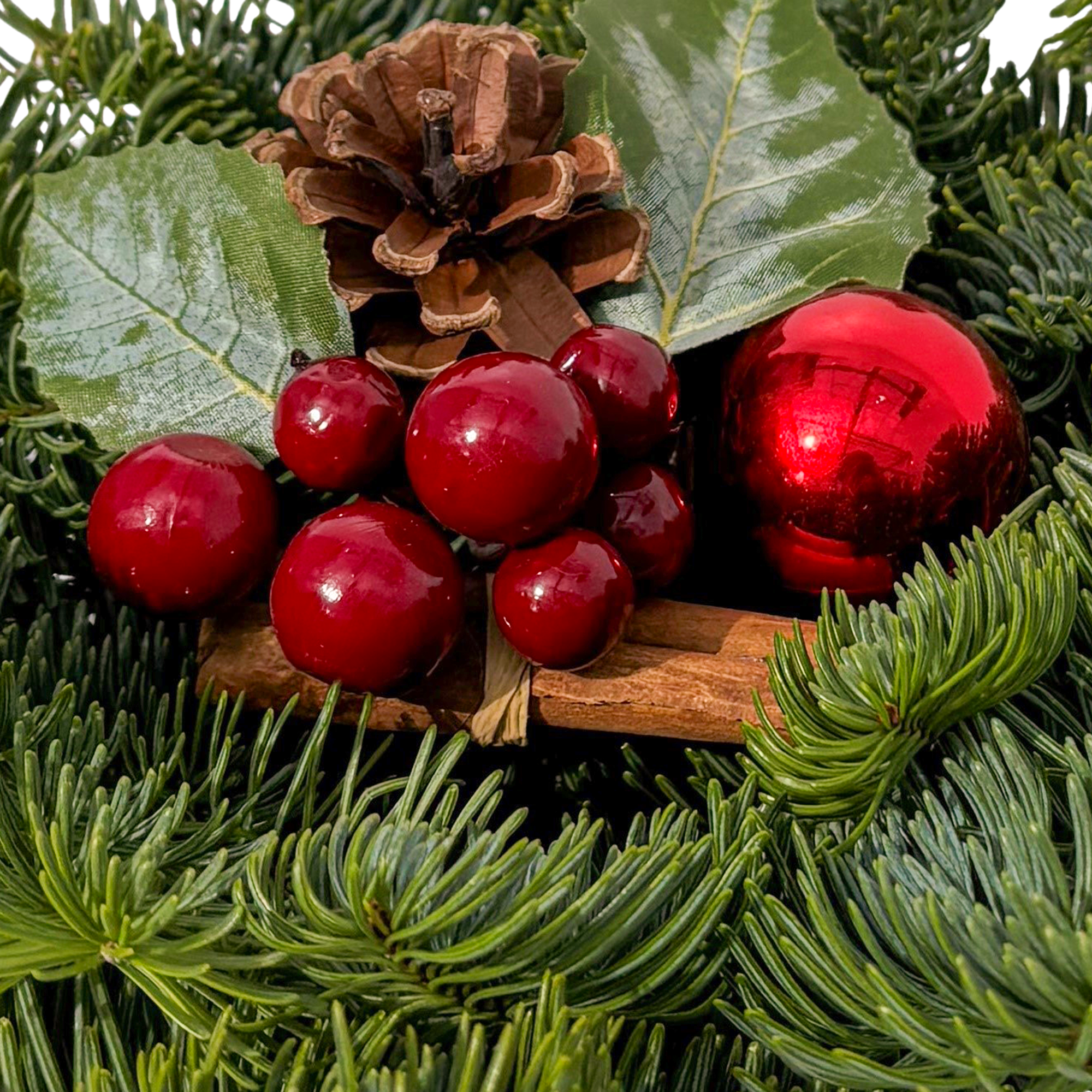 This luxury Grave Posy is the perfect adornment for your loved one’s graveside this Christmas season. It has been carefully crafted from real Noble Fir and tastefully decorated with seasonal ornaments in a traditionally festive red and green colour scheme.