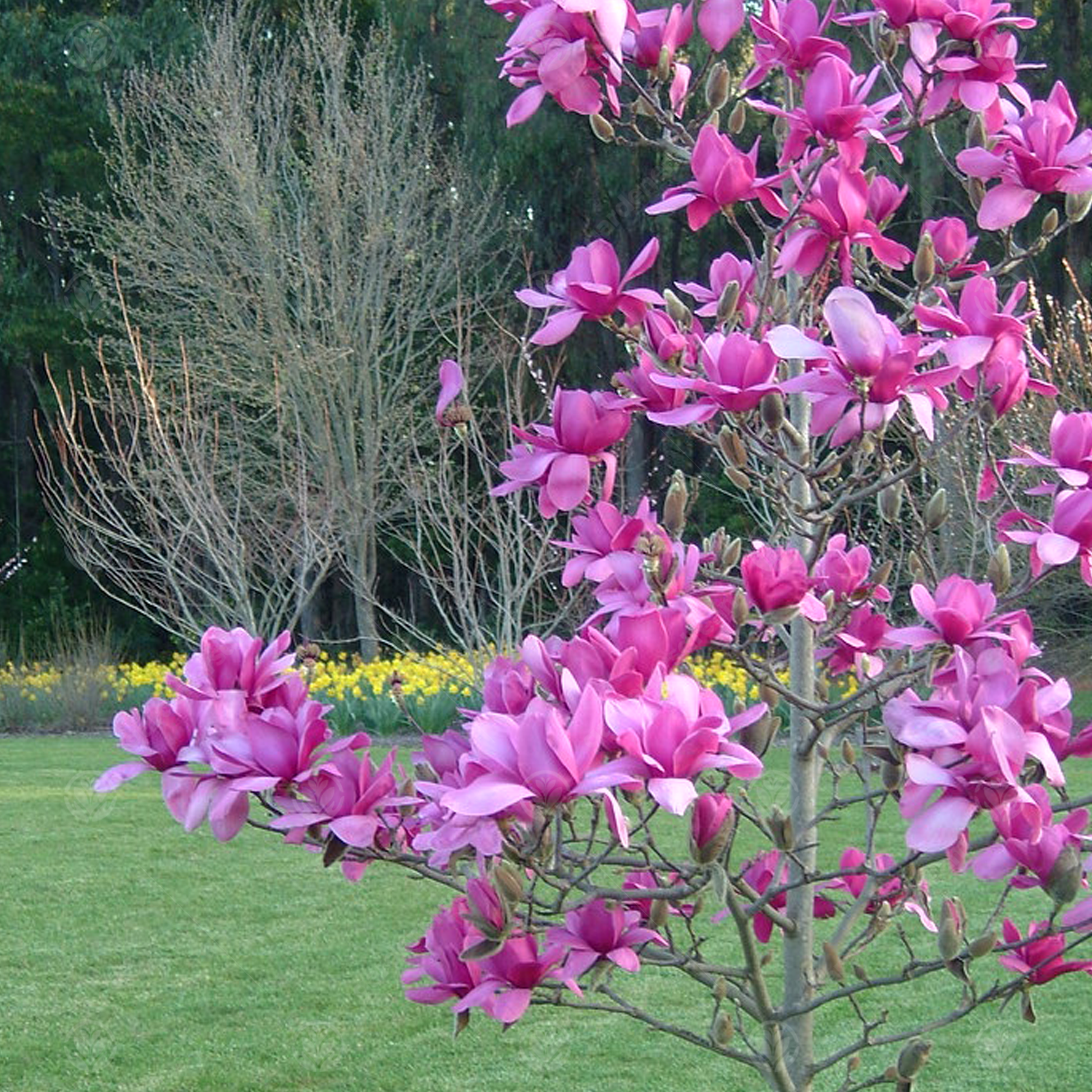 The Magnolia ‘Vulcan’ is a deciduous tree. This variety has large, ovate green leaves and large pink-red flowers which are cupped. These flowers appear in Spring and are highly fragrant. The Magnolia ‘Vulcan’ has an upright habit; this variety is hardy and will thrive in most soil types. The Magnolia ‘Vulcan’ is best planted in a full sun or partially shaded location.