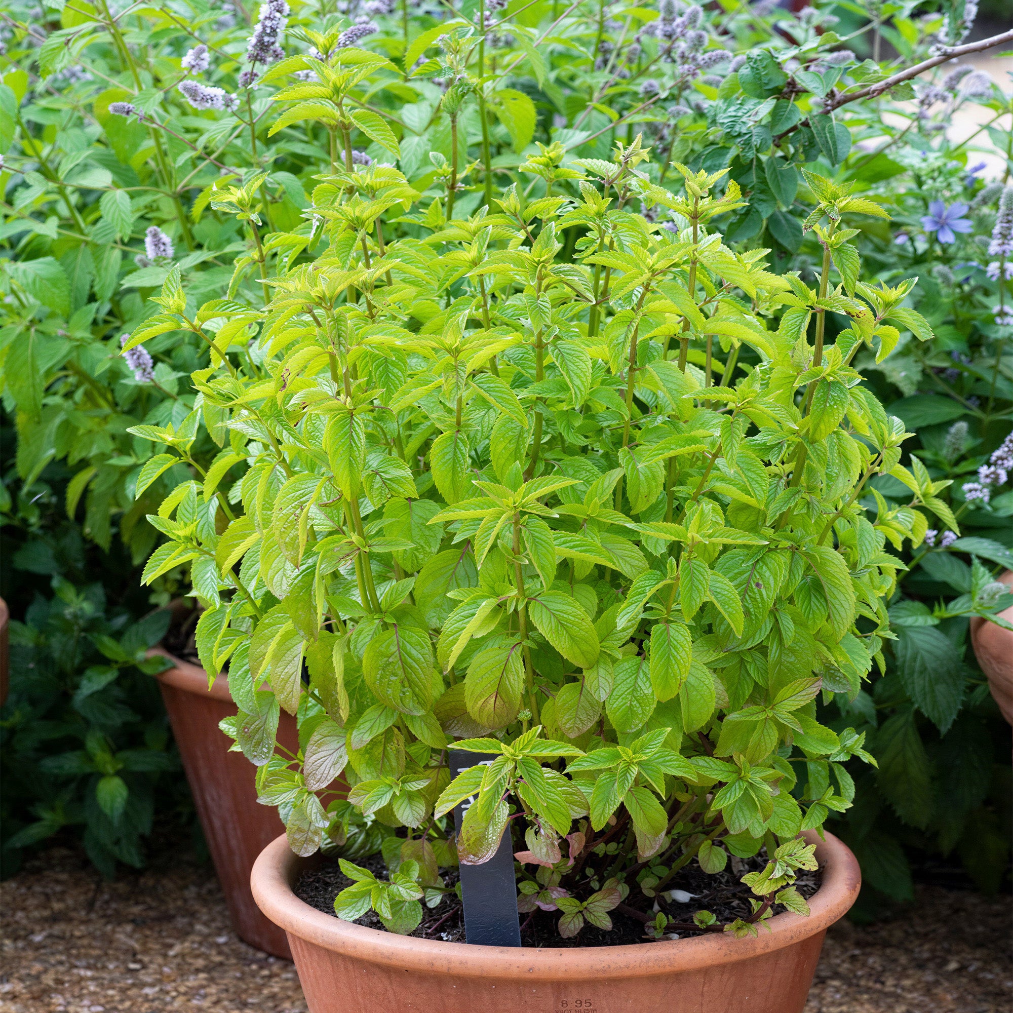 It is best to buy mint as young plants in spring. Mint is a vigorous plant that will spread all over the place if planted straight into the ground. This is why it is a good idea to plant it in a large pot filled with multi-purpose compost that can be placed in a prominent place to make picking easy.