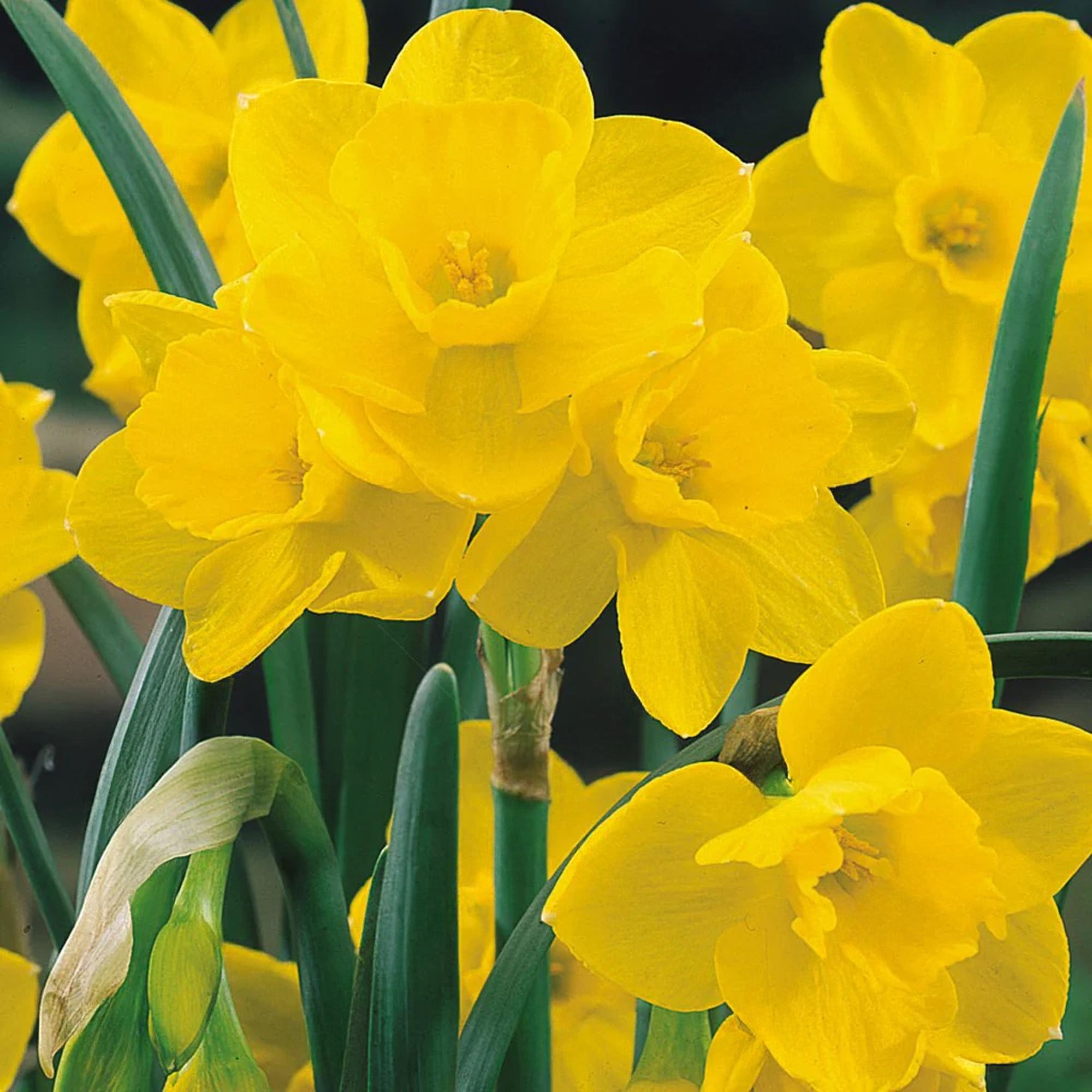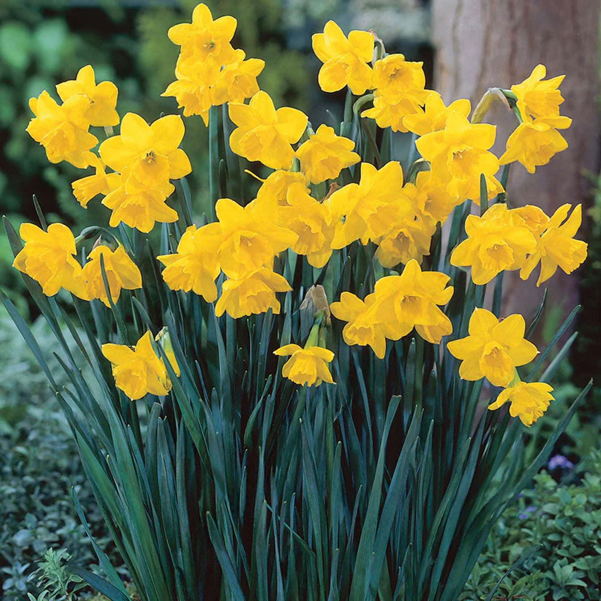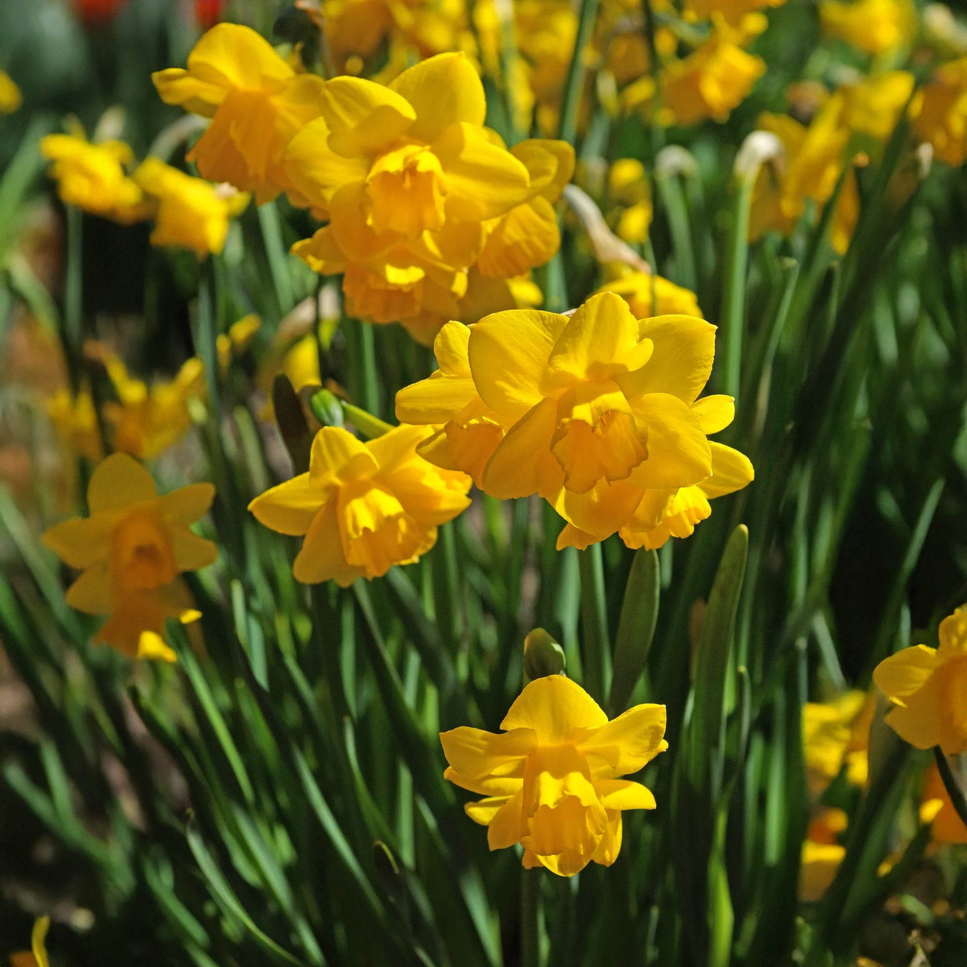 Plant narcissus bulbs from September to November in full sun or partial shade with moderately fertile, moist but well-draining soil. Dig holes around 5-10cm apart and plant one bulb in each hole at a depth 3 times the height of the bulb. Ensure the pointed end faces upwards then backfill with soil and compost, firm down, and water in well.