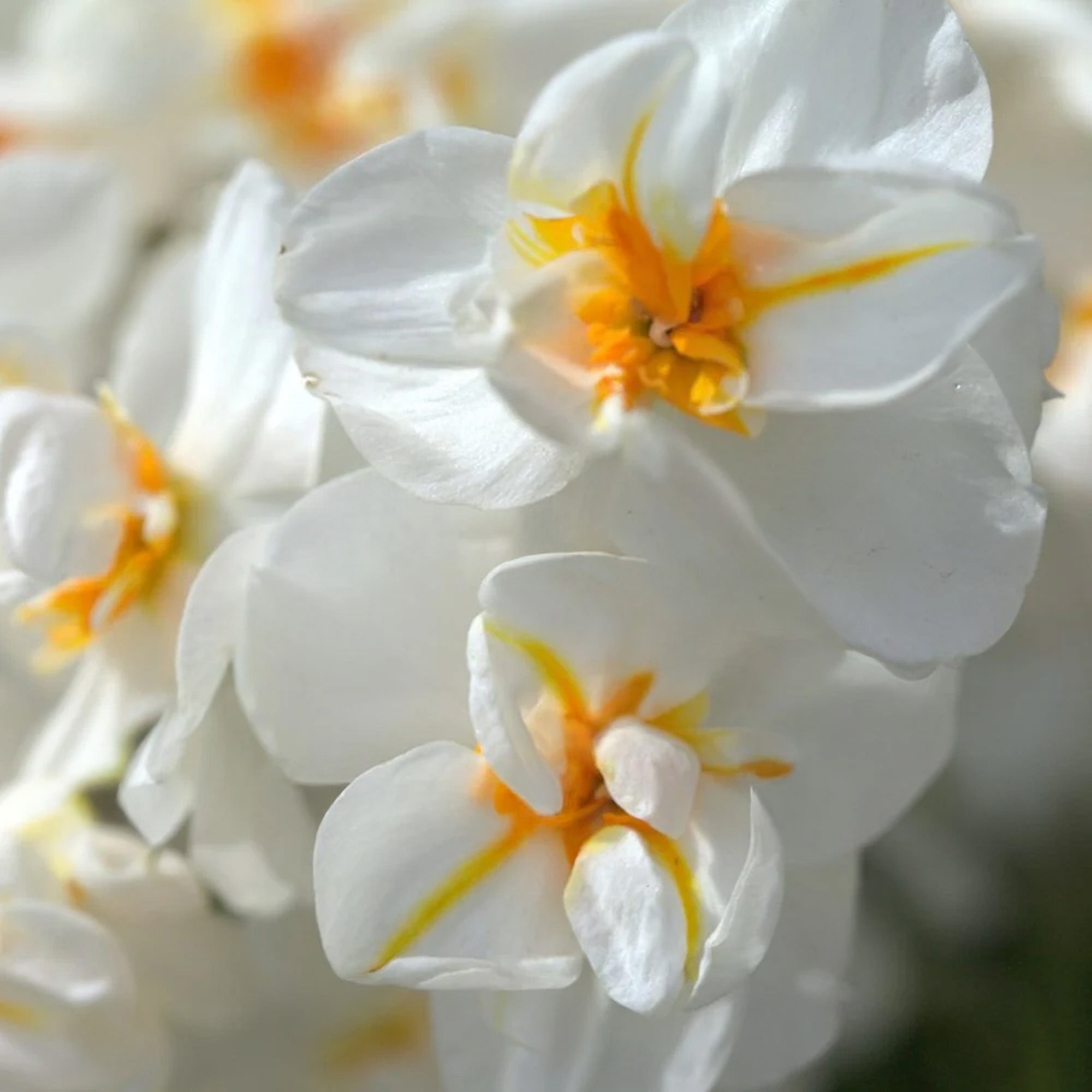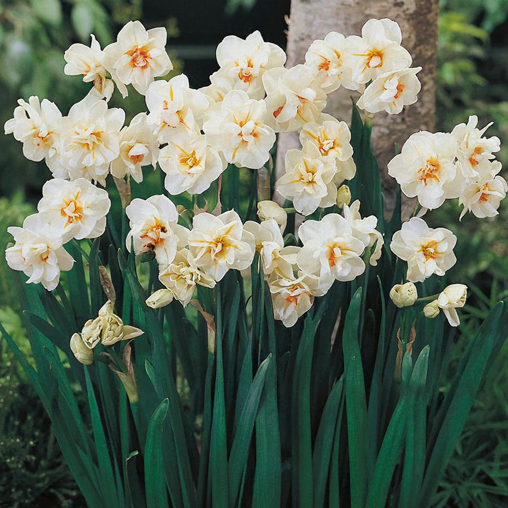Plant narcissus bulbs from September to November in full sun or partial shade with moderately fertile, moist but well-draining soil. Dig holes around 5-10cm apart and plant one bulb in each hole at a depth 3 times the height of the bulb. Ensure the pointed end faces upwards then backfill with soil and compost, firm down, and water in well.