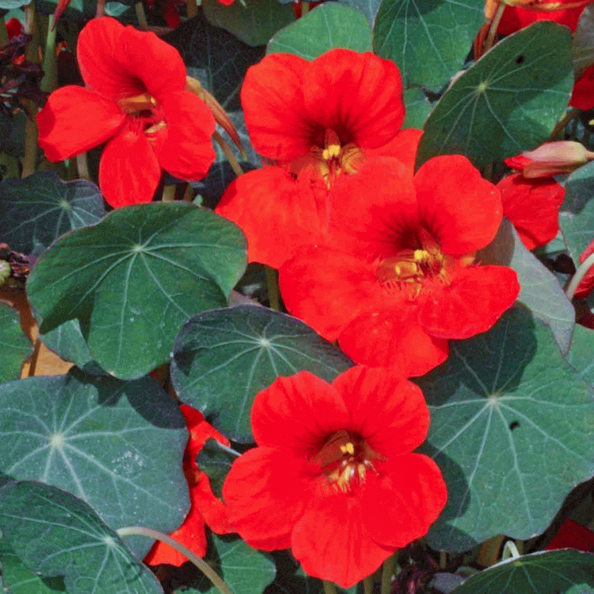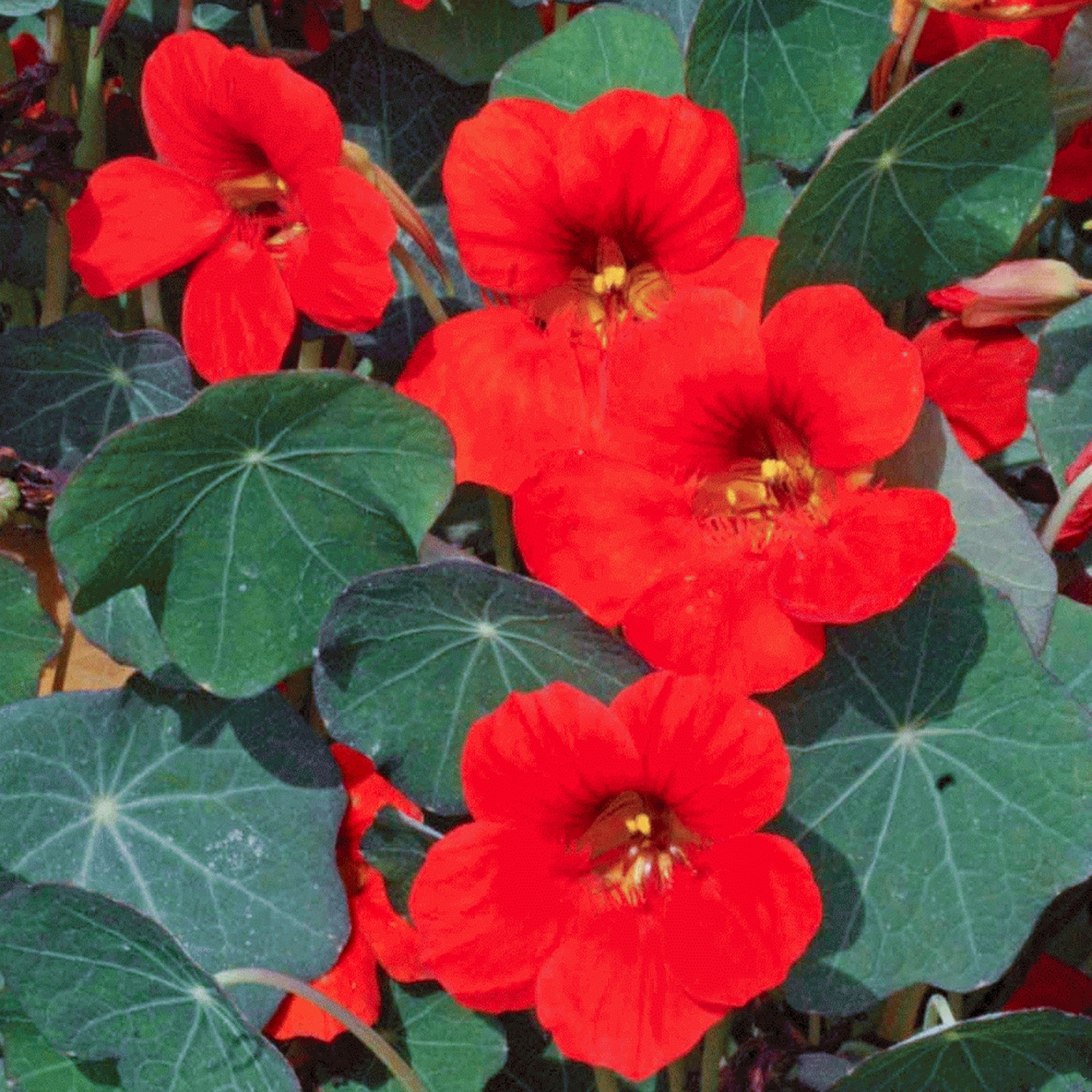 The plants feature large, round leaves in a rich green hue and vibrant deep red five-petaled flowers that bloom from June to September. With its bushy dwarf habit, Empress of India will reach up to 0.3m in height and spread at full maturity.