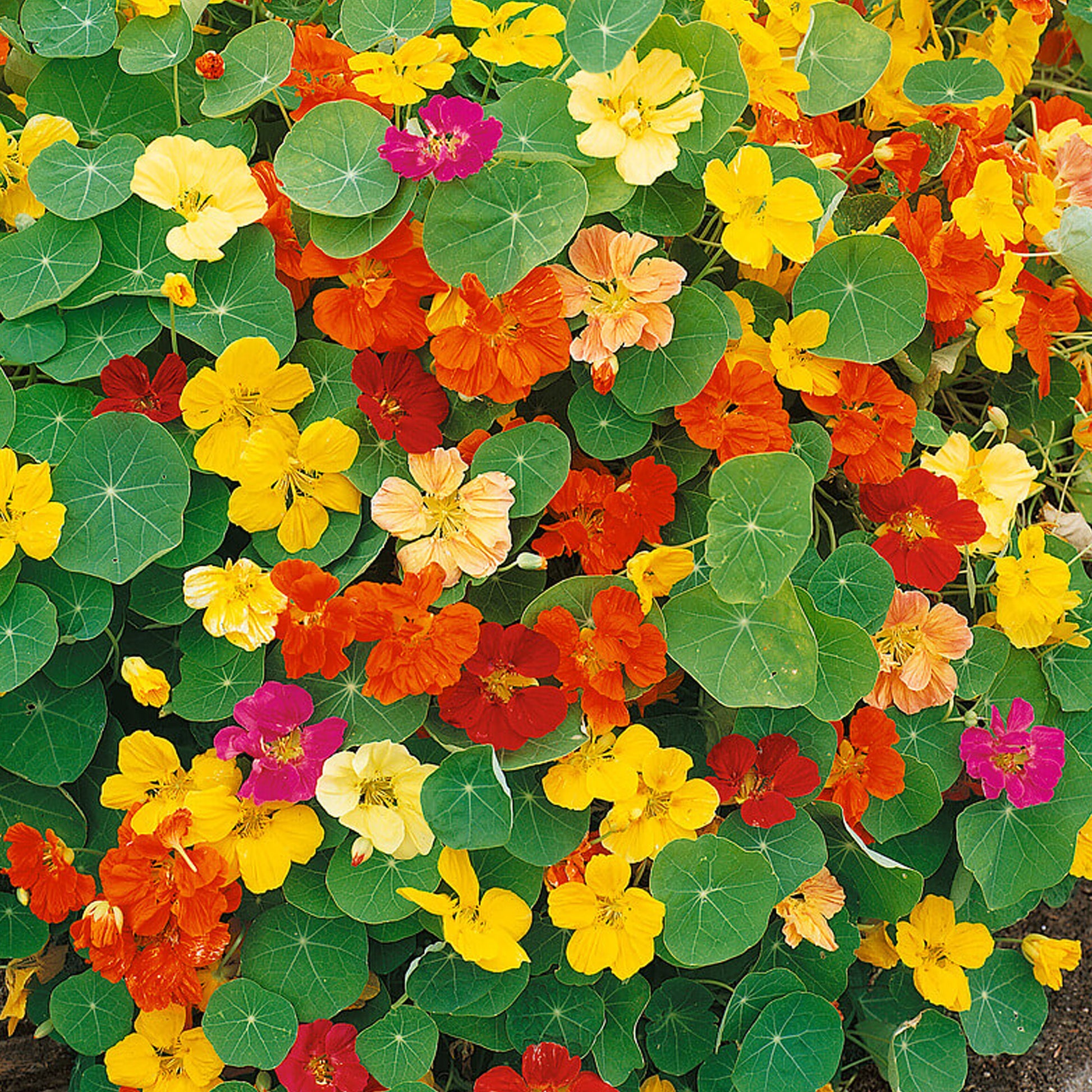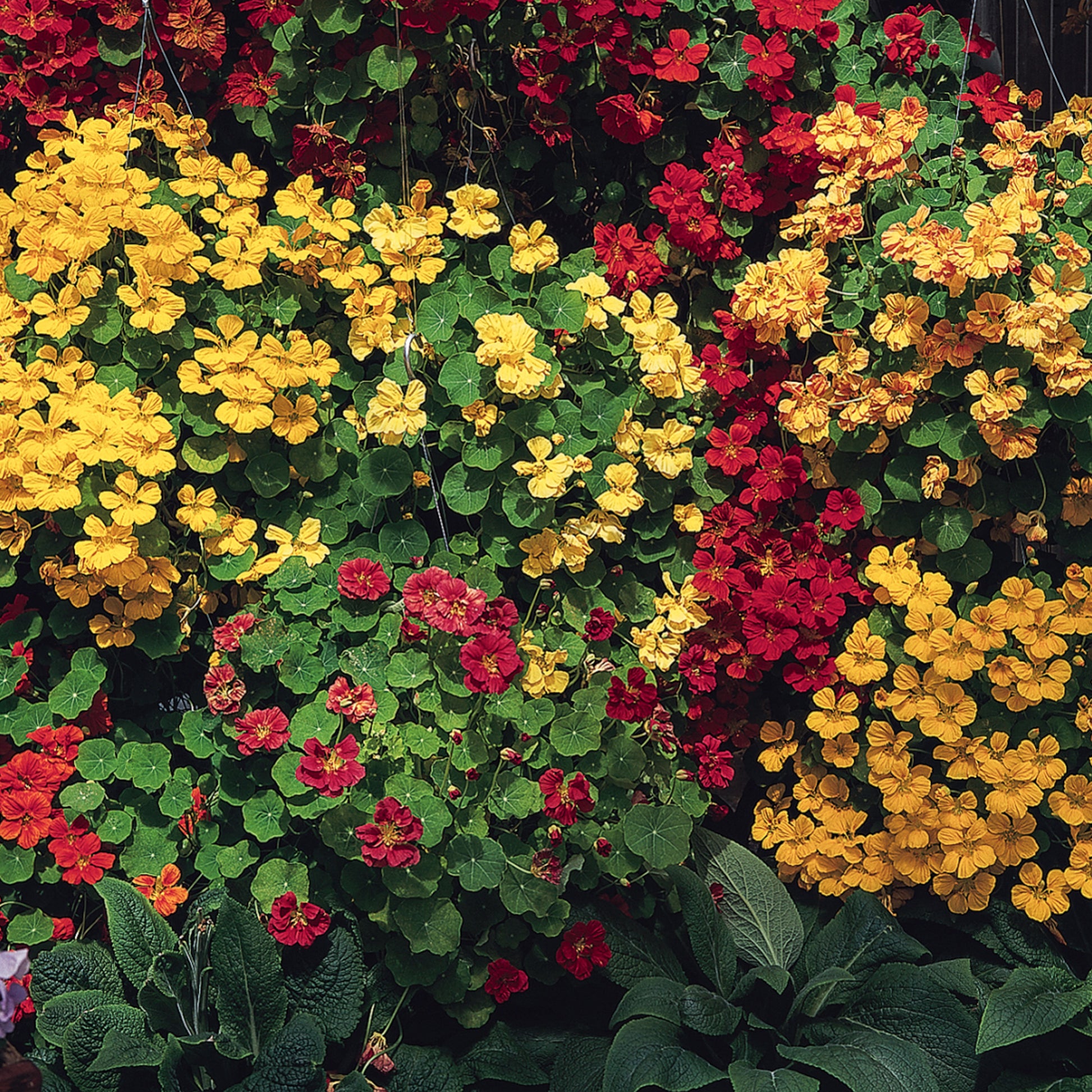 Position nasturtiums in full sun and well-drained soil. They perform best in poorer soils where they produce more flowers than foliage. Ideal for trailing from pots, beds, or walls, they require little fuss and quickly establish with minimal care.