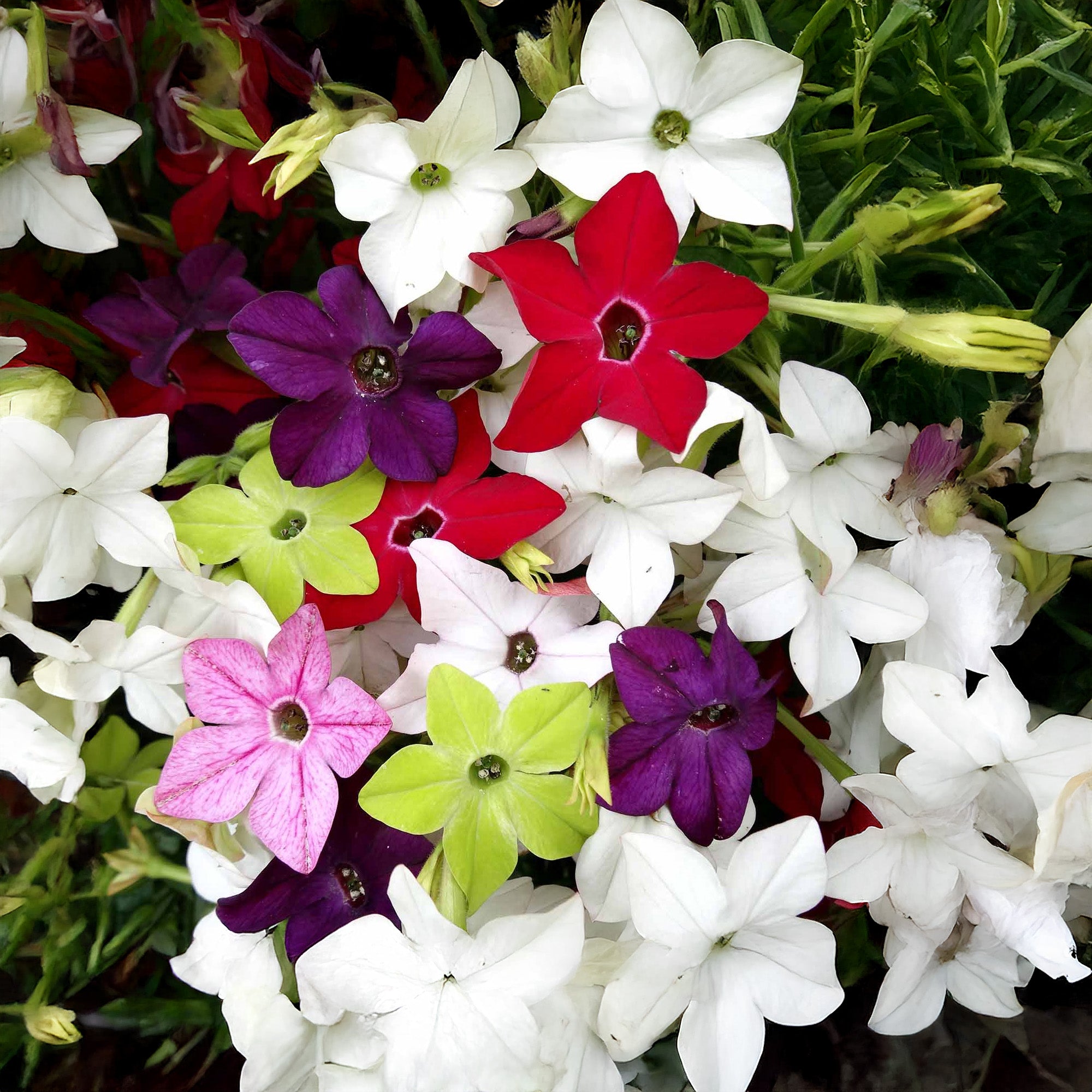 Vigorous and disease-resistant, these Nicotiana Perfume Mixed flower seeds produce an excellent show of summer flowers. They grow well in beds and borders but are also well-suited to container gardening, brightening patio pots with a striking pop of colour. From June right through to September, the branching stems are decorated with open clusters of fragrant, tubular flowers in various shades of red, pink, purple, and white. These blooms are a magnet for pollinators, enticing bees and butterflies into the garden all summer long.