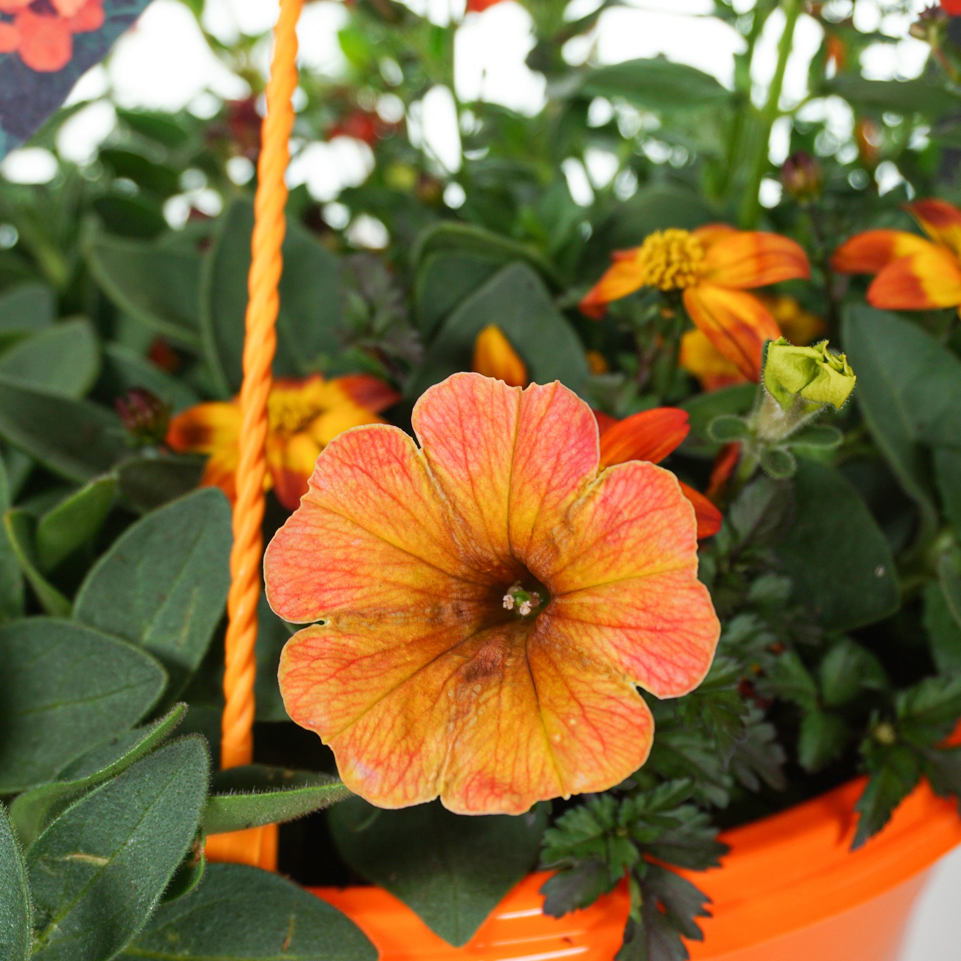 Plant Orange Shades basket mixes in free-draining, fertile compost and position in full sun or light shade. These warm-toned trailing and upright combinations feature vibrant hues of apricot, tangerine, and deep orange—perfect for creating a cheerful, sunlit display in baskets and containers.
