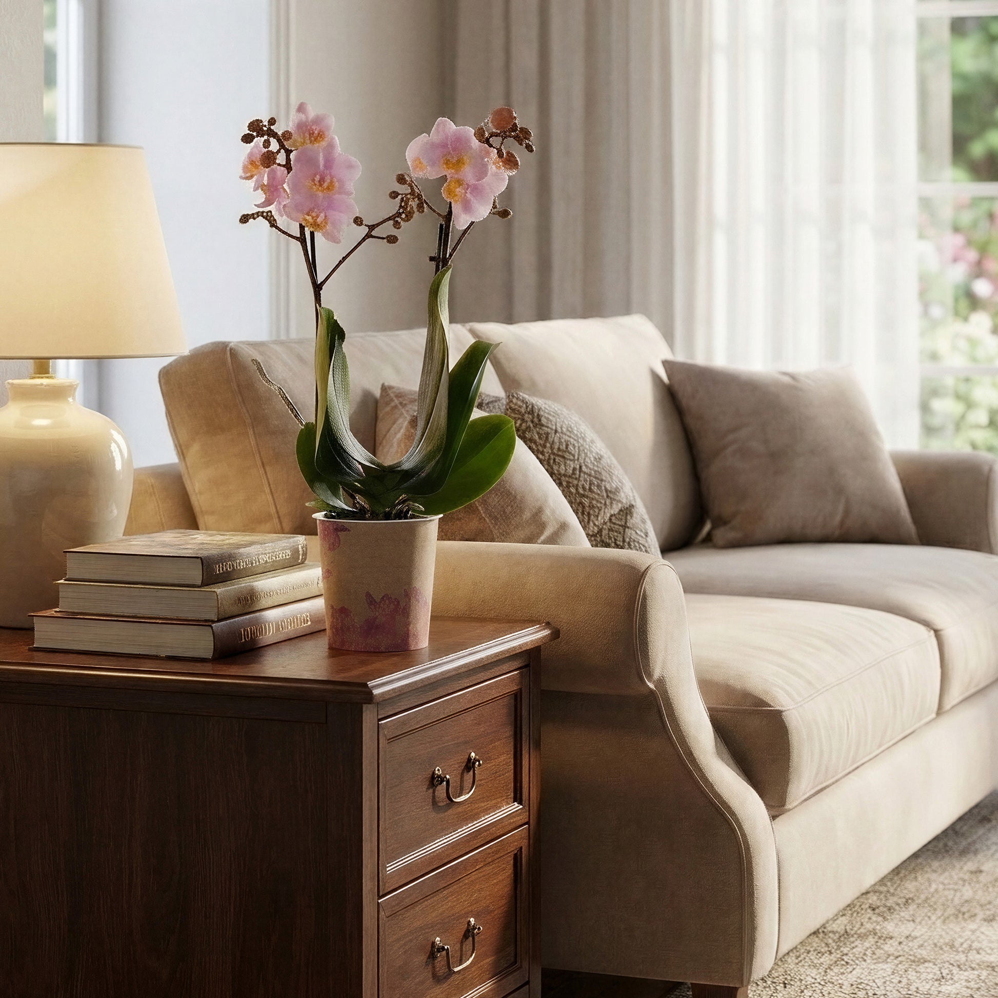 Phalaenopsis 'Andorra' adds an elegant, ornamental touch to spaces ranging from corporate offices to cozy living rooms. Its timeless look complements various design styles, making it an ideal gift that offers months of beauty rather than just a few days.