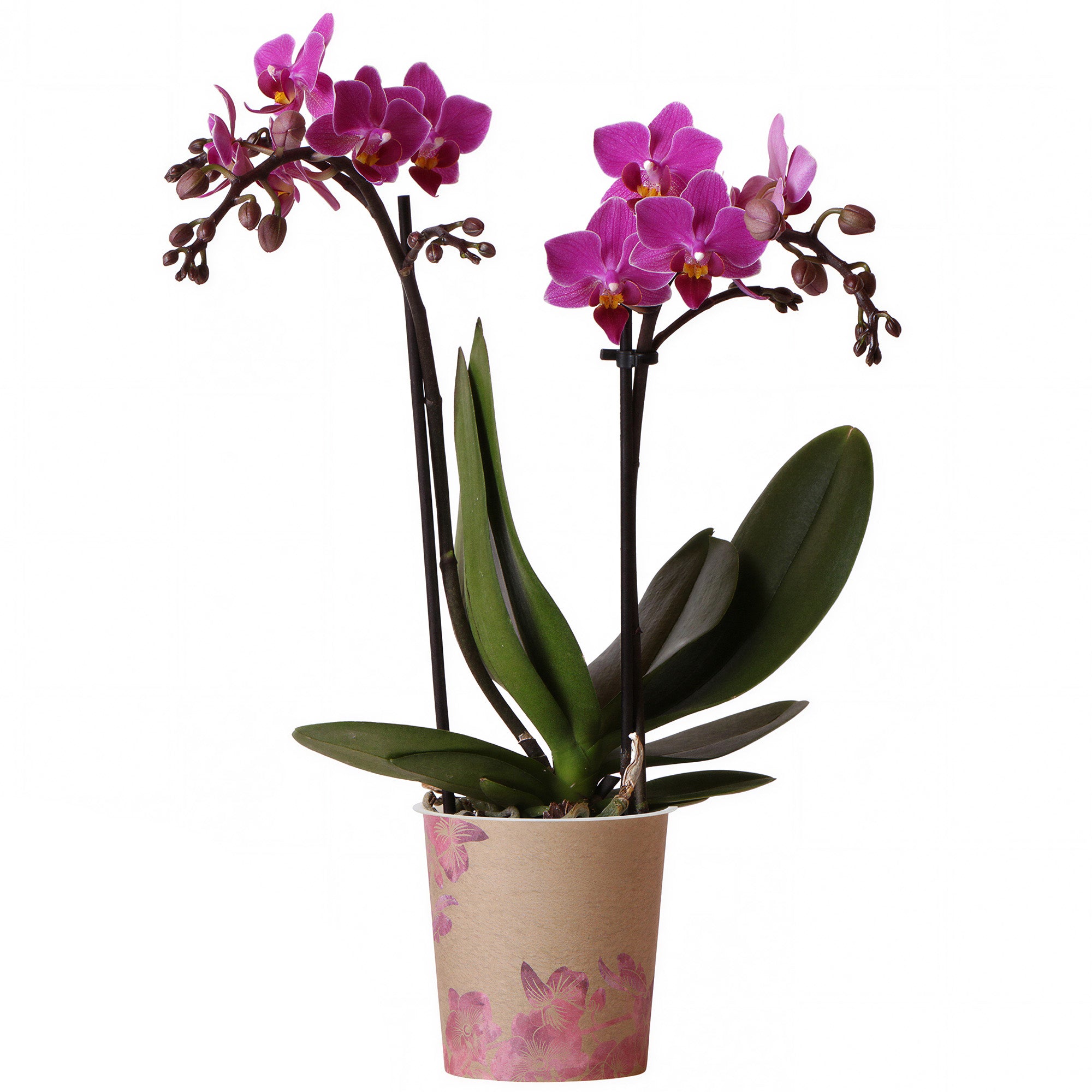 Orchid Phalaenopsis 'Basel', a lovely cultivar of the Moth Orchid family, is a stunning botanical accent for the home. It displays large, leathery leaves and tall, elegant stems that carry a succession of beautiful flowers. This variety is not bound by seasons and can flower at any time, often holding its blooms for several months to create a lasting visual impact.