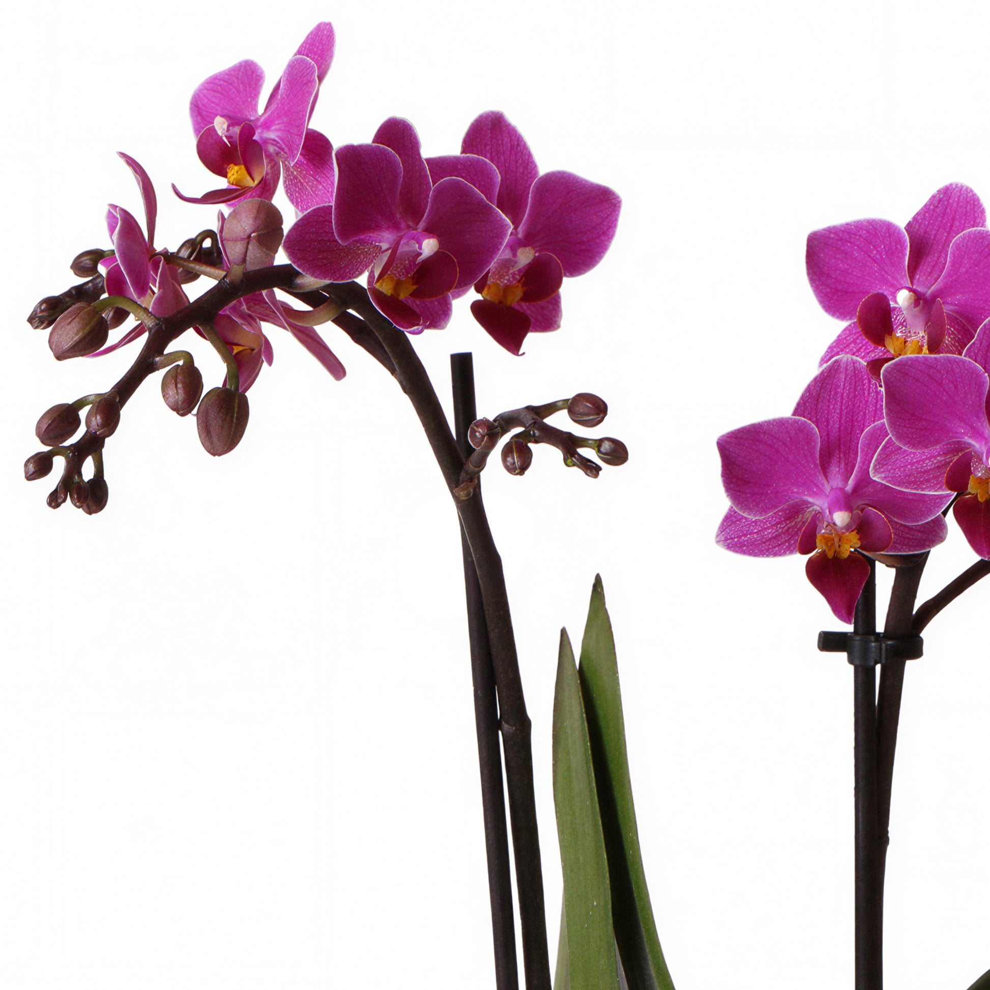 Orchid Phalaenopsis 'Basel' is a moderate feeder. Use a specialized orchid fertilizer diluted to a quarter of the recommended strength every time you water to support its lush foliage and vibrant deep-coloured blooms.