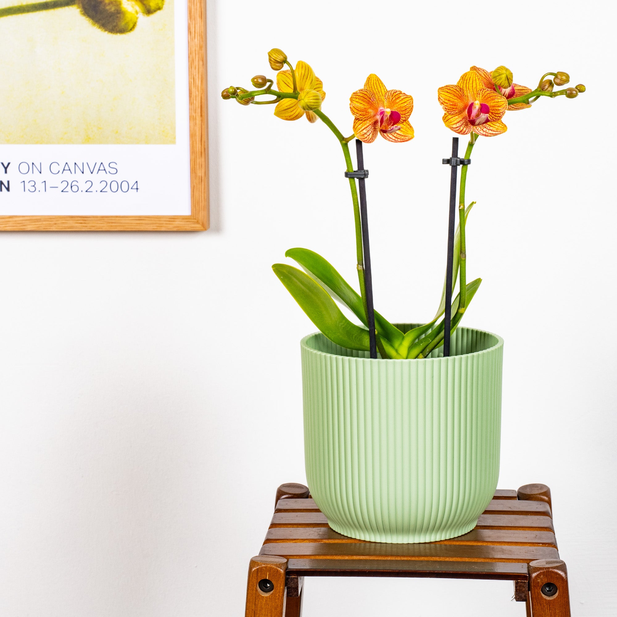 This Orchid thrives best in warm, bright indoor spots, making it a low-maintenance choice for busy households. To keep it looking its best, avoid overwatering, as Phalaenopsis orchids prefer to stay slightly dry. Trimming back stems after the blooms fade will support its health and encourage future growth.