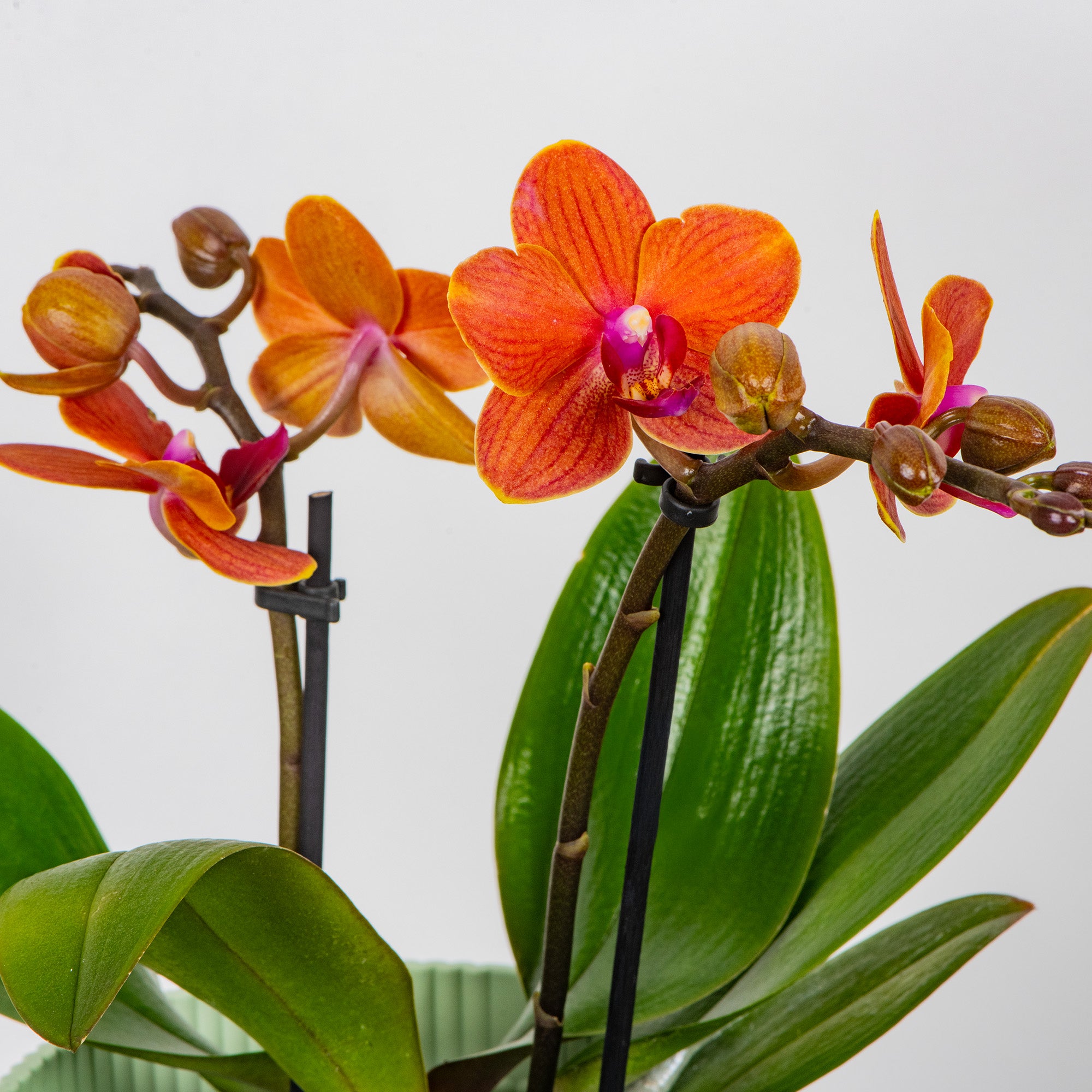 Orchid Phalaenopsis Kolibri Bolzano, also commonly known as a variety of Moth Orchid, is a beautifully unique indoor plant. Large, waxy, green leaves grow from the bottom of the plant, while flowers grow atop tall, elegant stems. Orchid flowers are incredibly exotic looking, and this variety boasts delicate, bright orange blooms. This orchid can flower at any time of the year, and when it does, flowers last for a long period of up to three months.