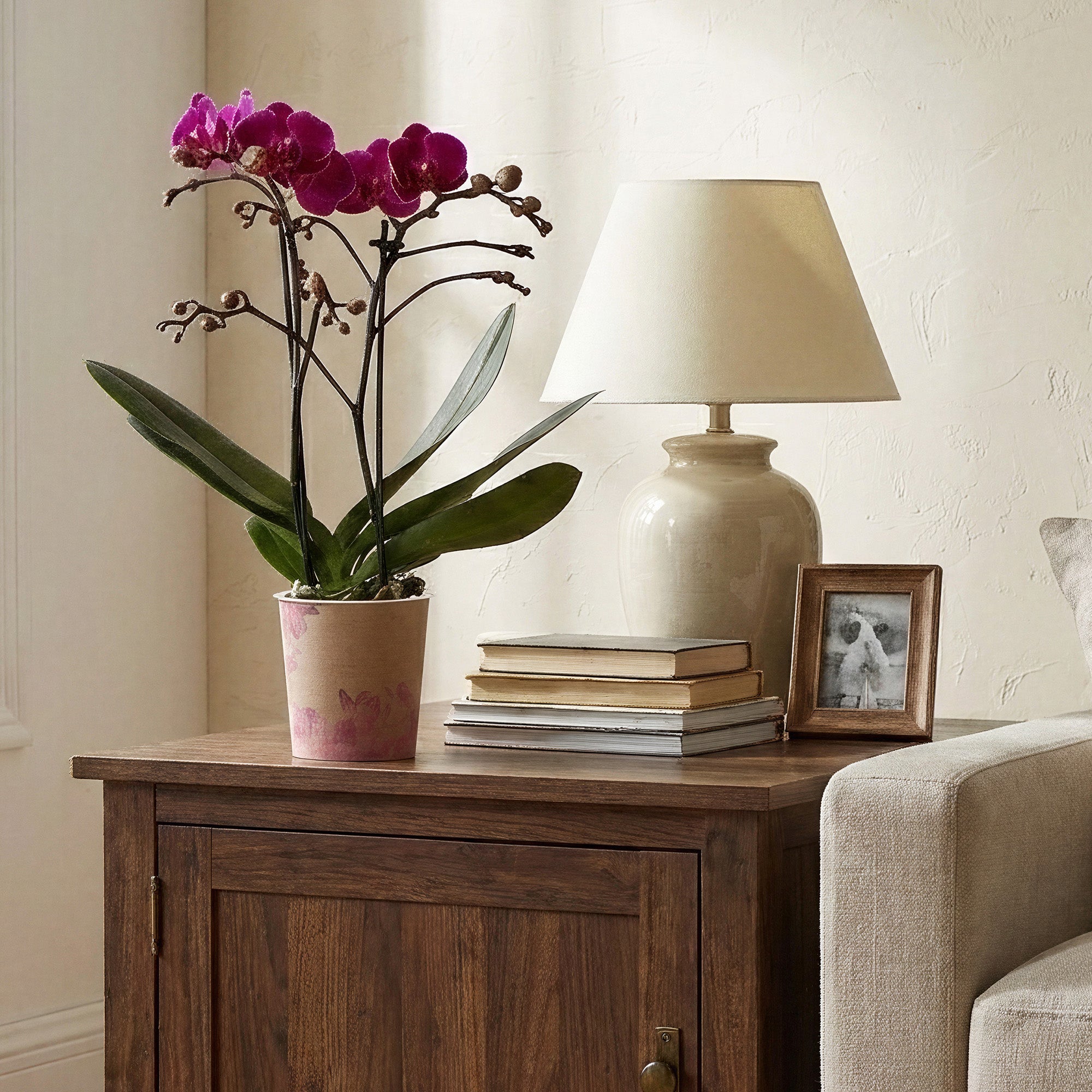 Phalaenopsis 'Morelia' is a superb addition to any room, instantly elevating the atmosphere of a living area or bedroom. Its graceful appearance suits many decor tastes, and it serves as a wonderful, sustainable gift option that lasts far longer than traditional floral arrangements.