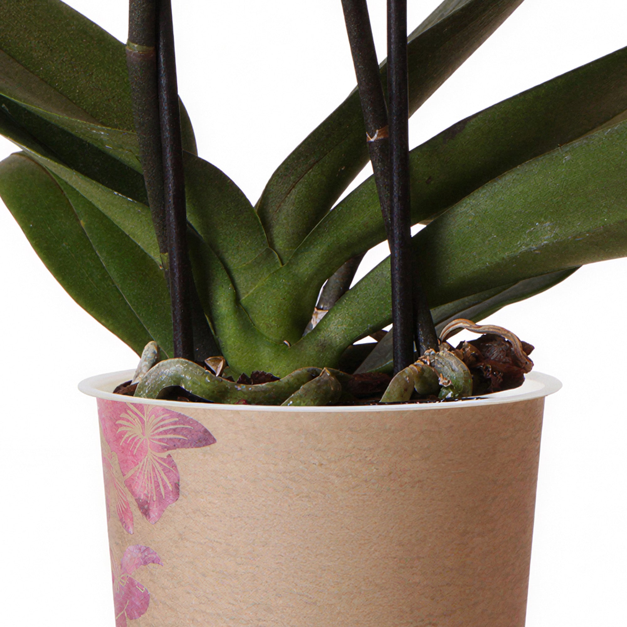Orchid Phalaenopsis 'Morelia' is a captivating Moth Orchid variety designed for indoor living. It is characterized by its sturdy, dark green leaves and arching stems that showcase vibrant, long-lasting blossoms. This plant has the ability to flower throughout the year, with individual blooms lasting up to three months, providing a continuous splash of colour.