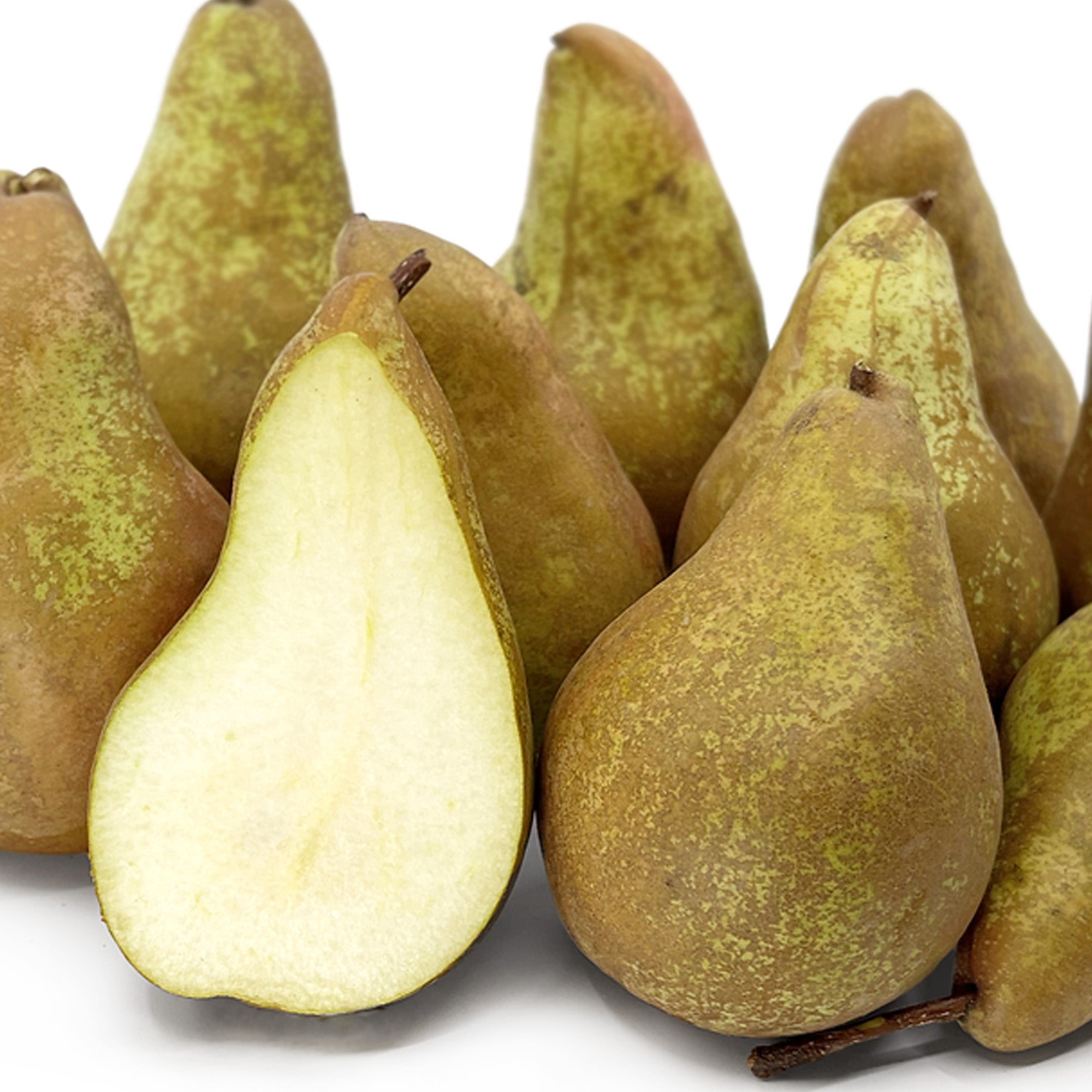 Concorde pears are luscious dessert fruits - juicy with a sweet flavour. They are similar to conference pears in shape and texture and feature a yellow-green, sometimes russeted, skin. Concorde pear trees produce a reliable annual crop, with a small yield appearing on the tree’s second year and full yields around 3 years later. Concorde pear trees are self-fertile, but planting a partner pear tree nearby will increase the amount of fruit produced.