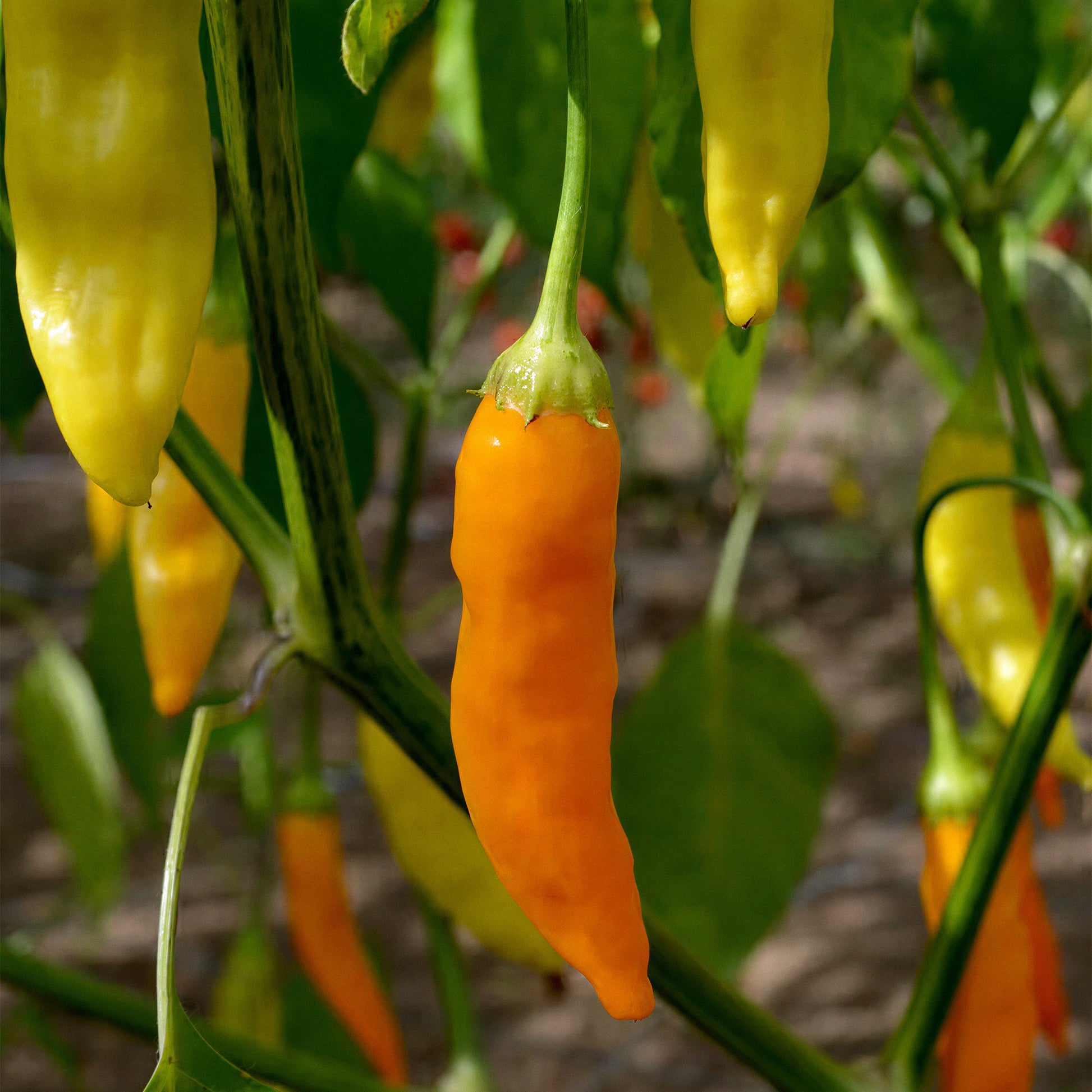 Chilli Pepper 'Havana Gold' is a stunning Aji-type variety that brings tropical colour and gentle heat to your garden and kitchen. Its slender, golden-yellow fruits offer a mild to medium kick - around 2,500–5,000 Scoville units - with a fruity, citrus-like flavour that’s perfect for salsas, sauces, and summer dishes.
