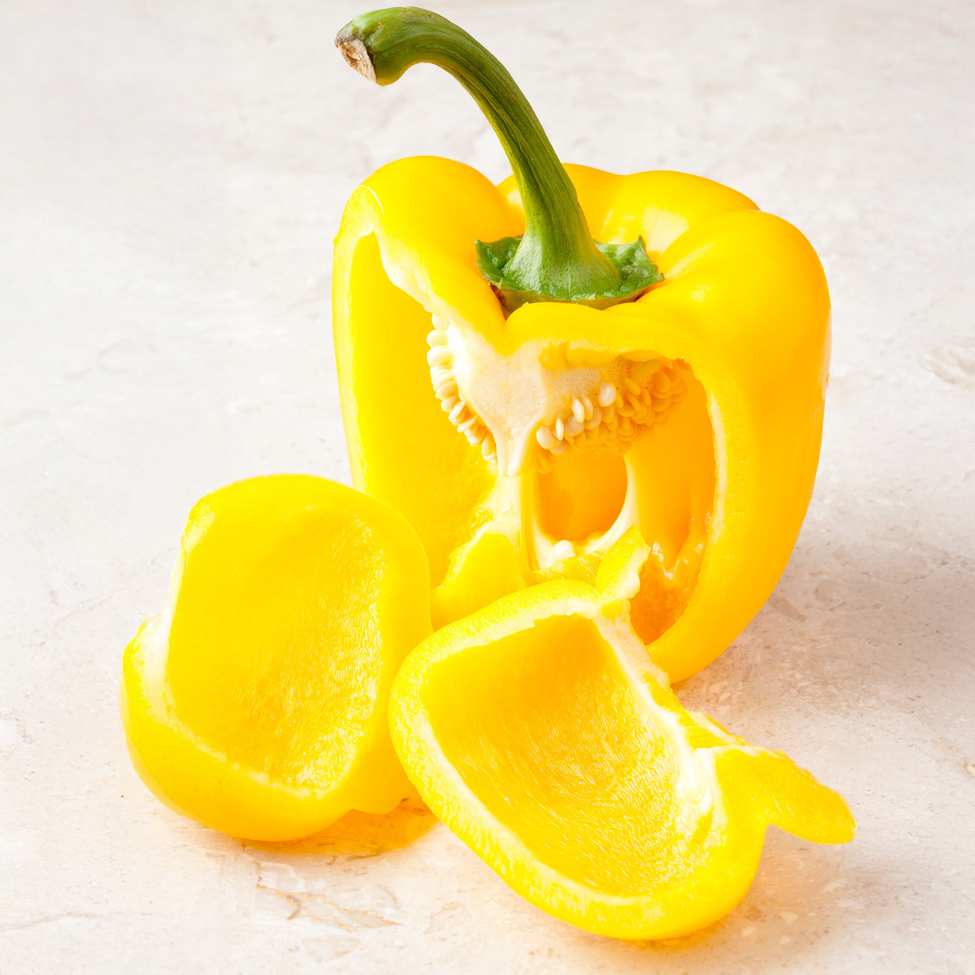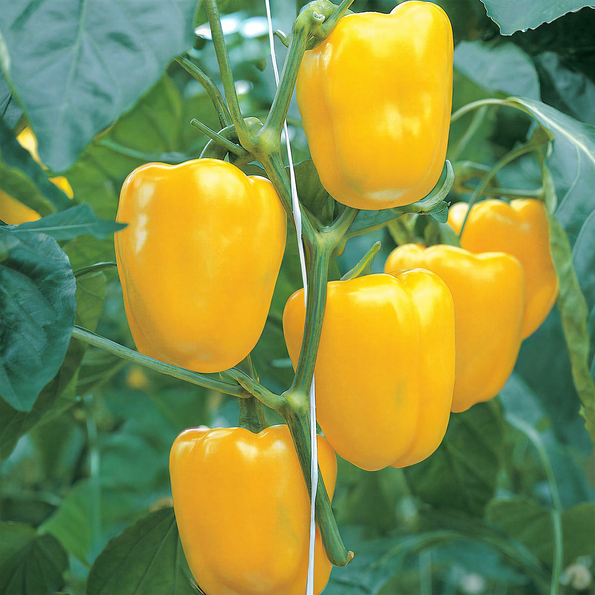 Sweet Pepper 'Fiesta F1' is a vibrant, high-yielding hybrid that produces dazzling bright yellow Bell Peppers. Known for its sweet flavour, crisp texture, and thick walls, this variety is perfect for salads, roasting, grilling, and stuffing. Its eye-catching fruits ripen early and uniformly, making it a favourite for gardeners seeking colour, taste, and reliability.