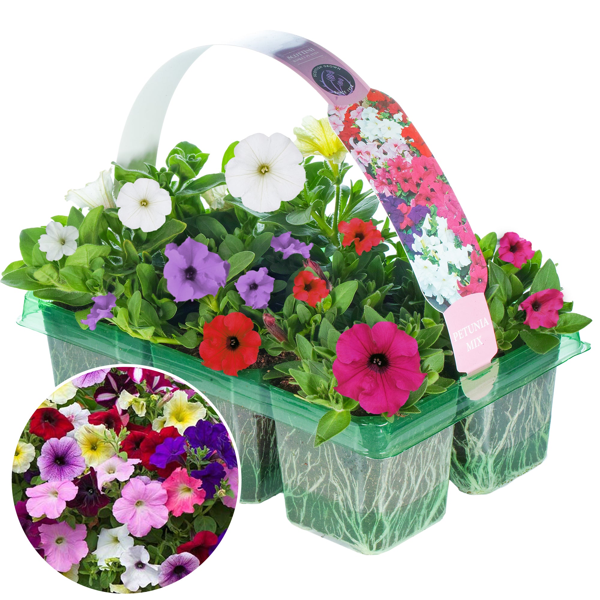 The Petunia Mixed Variety Basket Plants will offer a vibrant array of colour and gorgeous appearance to any garden. The plants are easy to care for throughout the year, flowering from late Spring until the end of Summer, only taking a few weeks to thrive and flourish once they're planted. Petunia Mix are supplied as a 6 pack, with 3 lots of 2 Petunia plant varieties each. They are great for the garden and can be utilised in many ways. Popular uses of these plants are as part of a hanging basket display, flower bed, border, pot or garden container. Regular watering should be carried out and a feed every 4-6 weeks is also required.