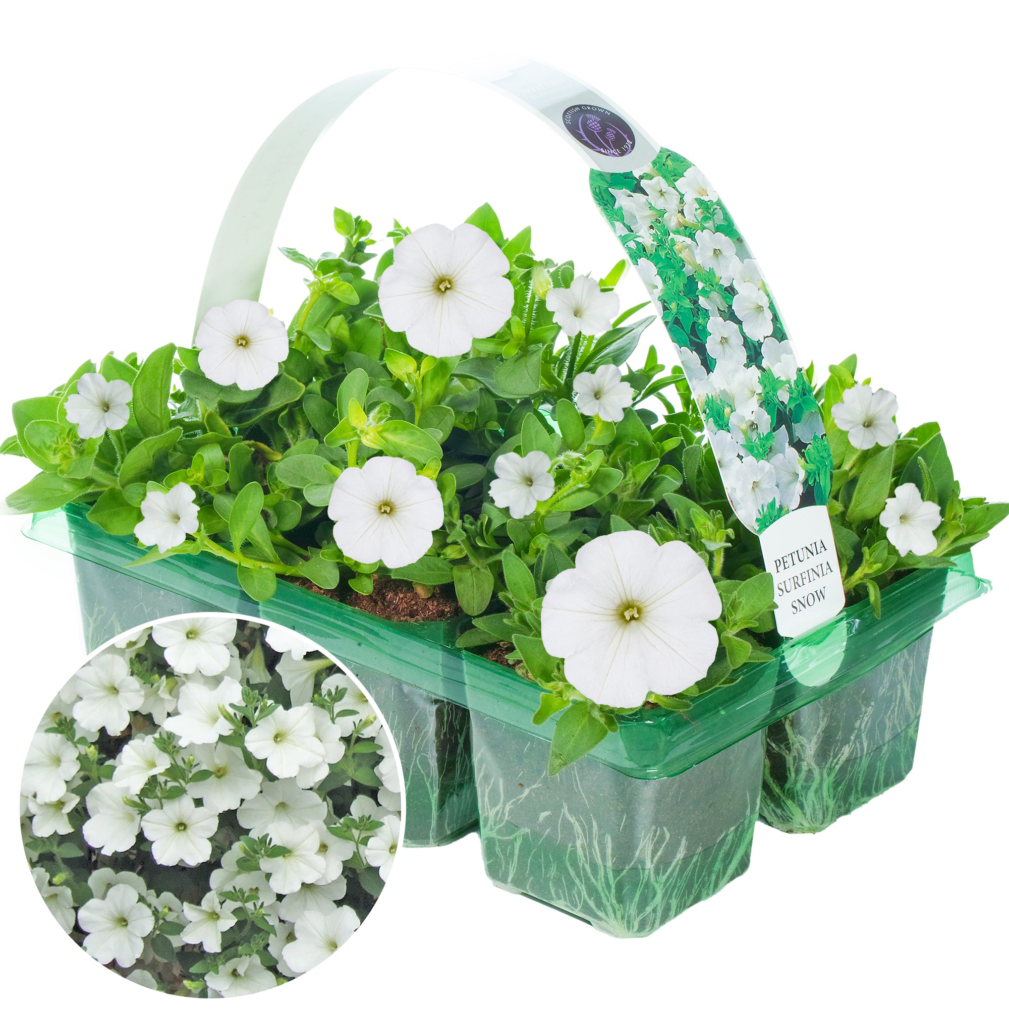 The Petunia Surfinia White Basket Plants will offer a classic and elegant look that will add class amongst any garden display. The plants are easy to care for throughout the year, flowering from late Spring until the end of Summer, only taking a few weeks to thrive and flourish once they're planted. Petunia Surfinia can be utilised as part of a hanging basket display, flower bed, border, pot or garden container. Regular watering should be carried out and a feed every 4-6 weeks is also required.