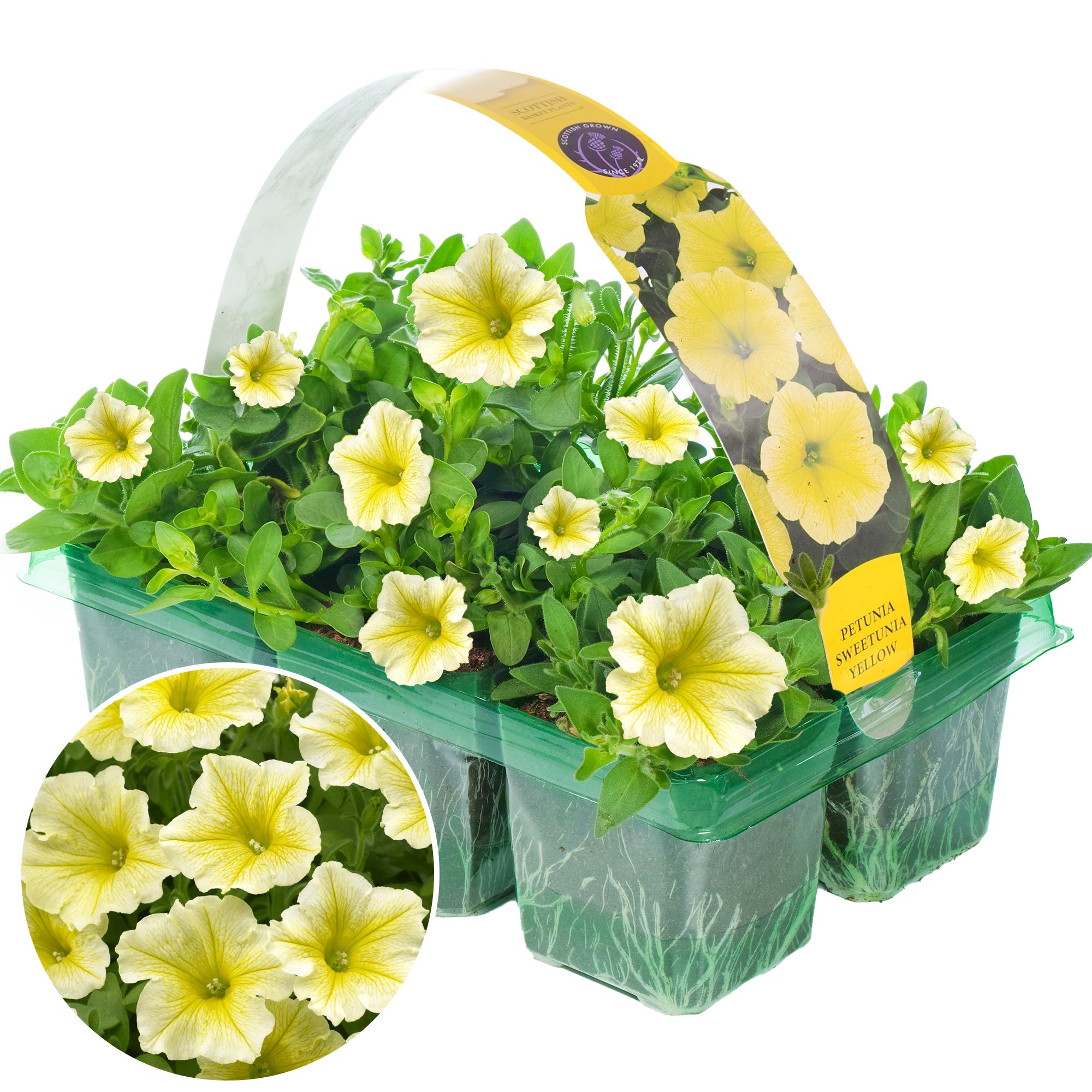 The Petunia Surfinia Yellow Basket Plants will offer a vibrant array of colour and gorgeous appearance to any garden. The plants are easy to care for throughout the year, flowering from late Spring until the end of Summer, only taking a few weeks to thrive and flourish once they're planted. Petunia Surfinia can be utilised as part of a hanging basket display, flower bed, border, pot or garden container. Regular watering should be carried out and a feed every 4-6 weeks is also required.