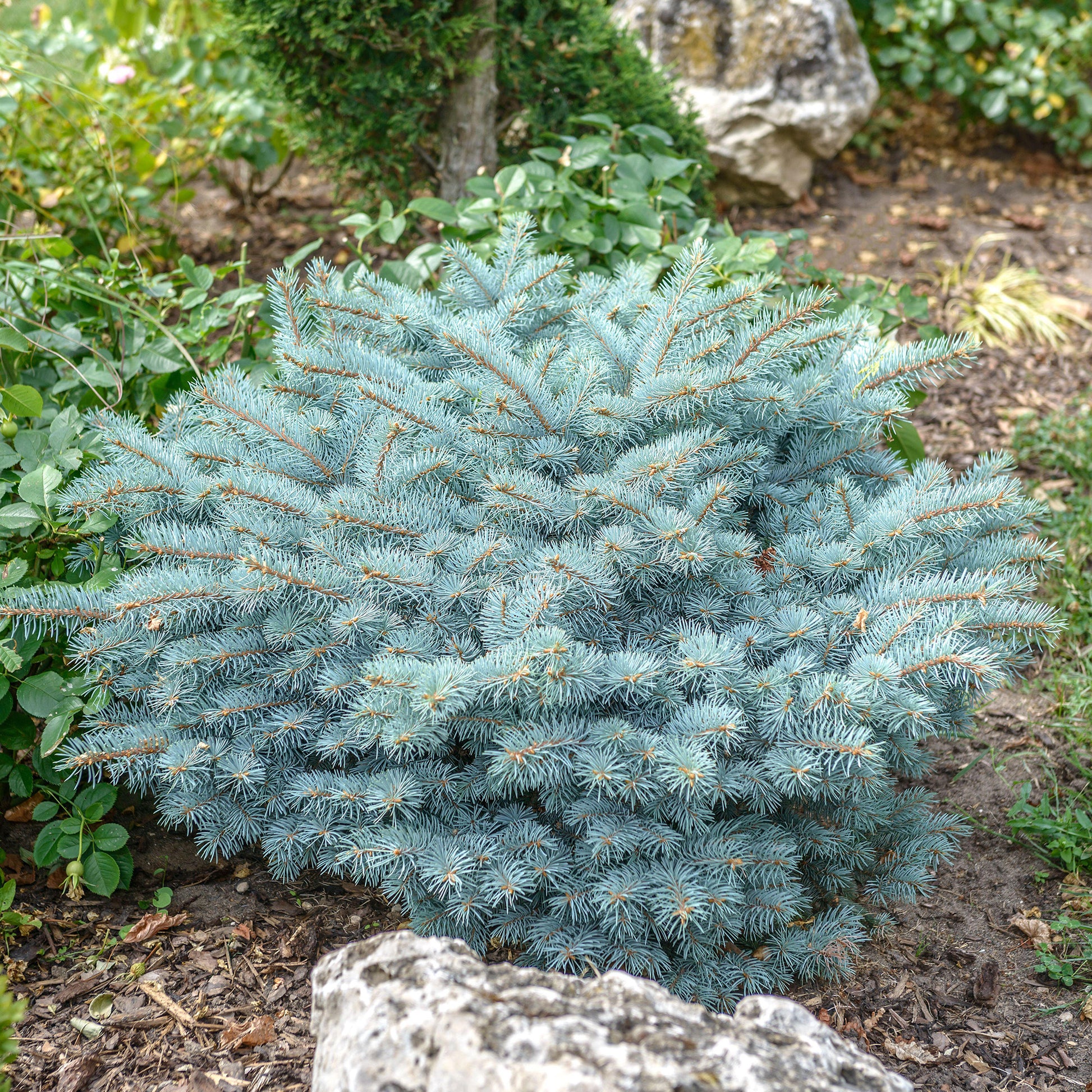 The 'blue' in Blue Spruce is powered by the sun. For the most intense and beautiful silvery-blue colour, you must give the Picea pungens Glauca an open, sunny position with good air circulation.