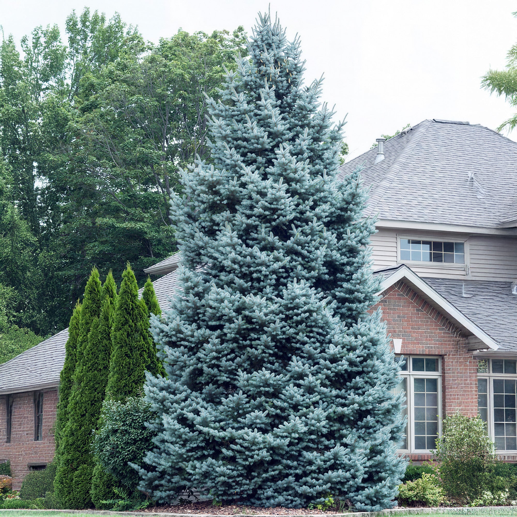 Picea pungens glauca, the Colorado Blue Spruce, is a classic evergreen conifer, prized for its strong architectural form and stunning foliage colour. Its main display comes from its stiff, sharp needles which have an intense and beautiful silvery-blue colour that provides a year-round focal point. It creates a superb, formal specimen that brings colour, texture, and a strong conical shape to the landscape.