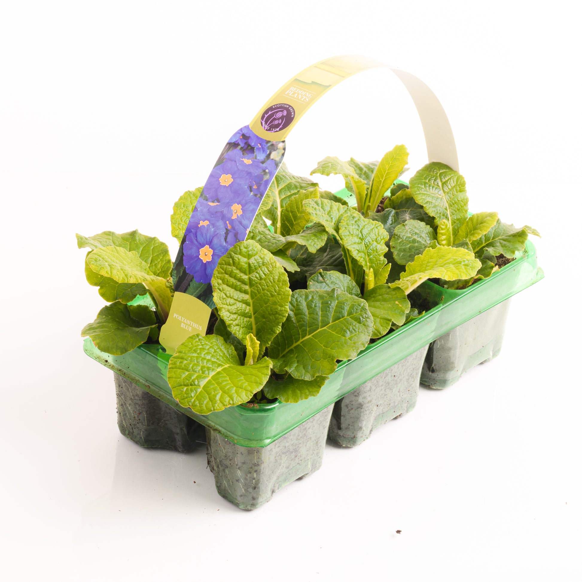 Plant Polyanthus bedding plants in moist, well-drained, humus-rich soil in full sun or partial shade. These compact, clump-forming plants are perfect for borders, containers, or edging displays, offering clusters of vibrant blooms atop sturdy stems. Space plants 20–25cm apart for a neat, full effect.