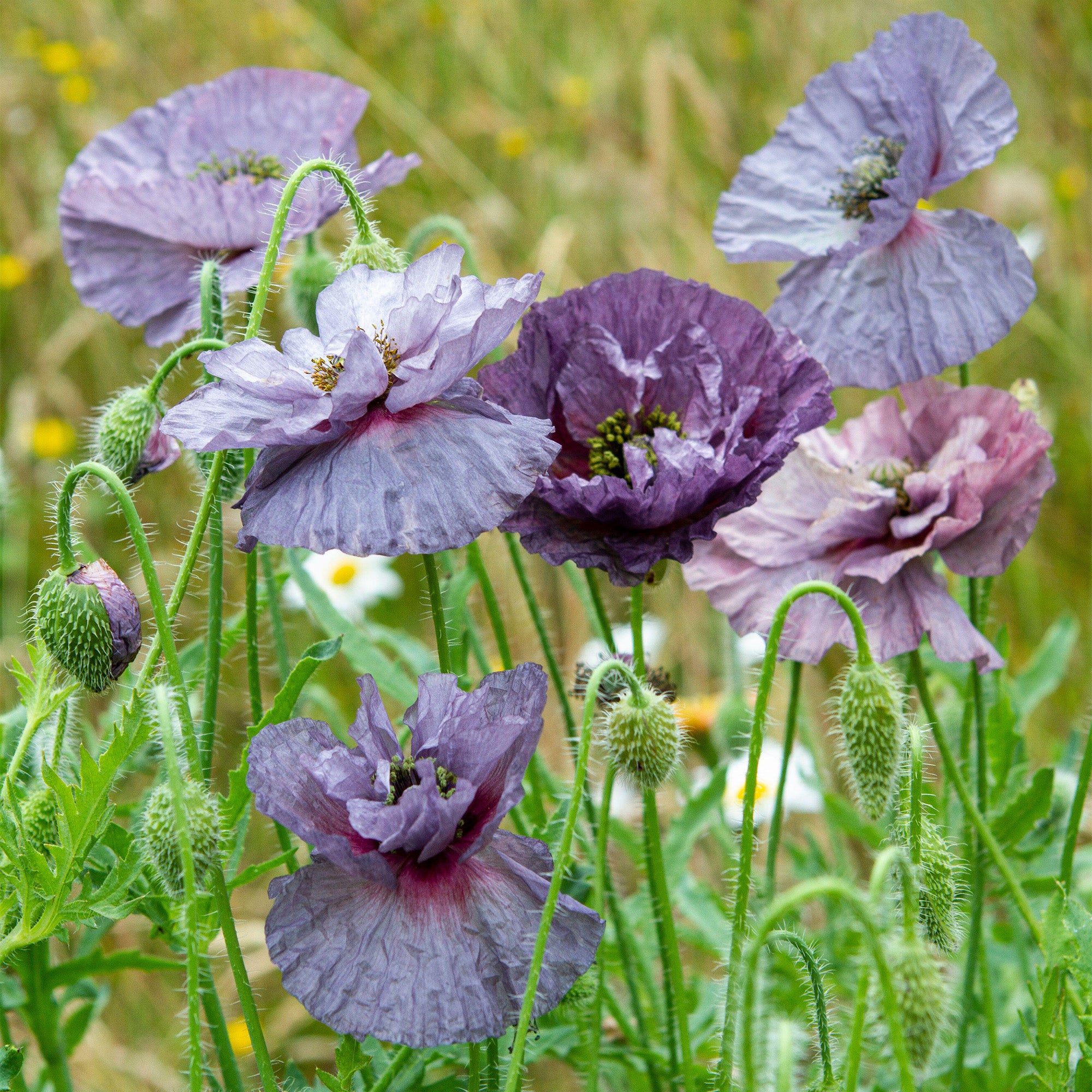 Poppy 'Amazing Grey' is a truly unique annual that brings a misty elegance to summer borders and wildflower gardens. Its semi-double, ruffled blooms shimmer in shades of smoky lilac, soft grey, and silvery mauve, with each flower offering a slightly different hue and texture. Boasting papery petals and a fluttering habit, this variety adds a cool, ethereal touch to pastel planting schemes and pollinator-friendly displays.