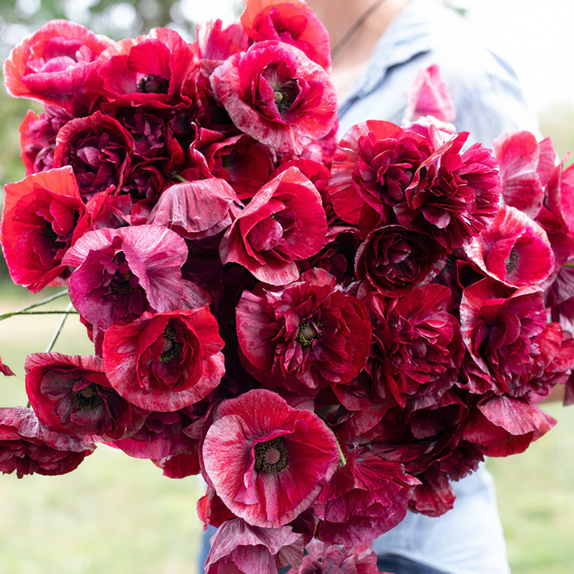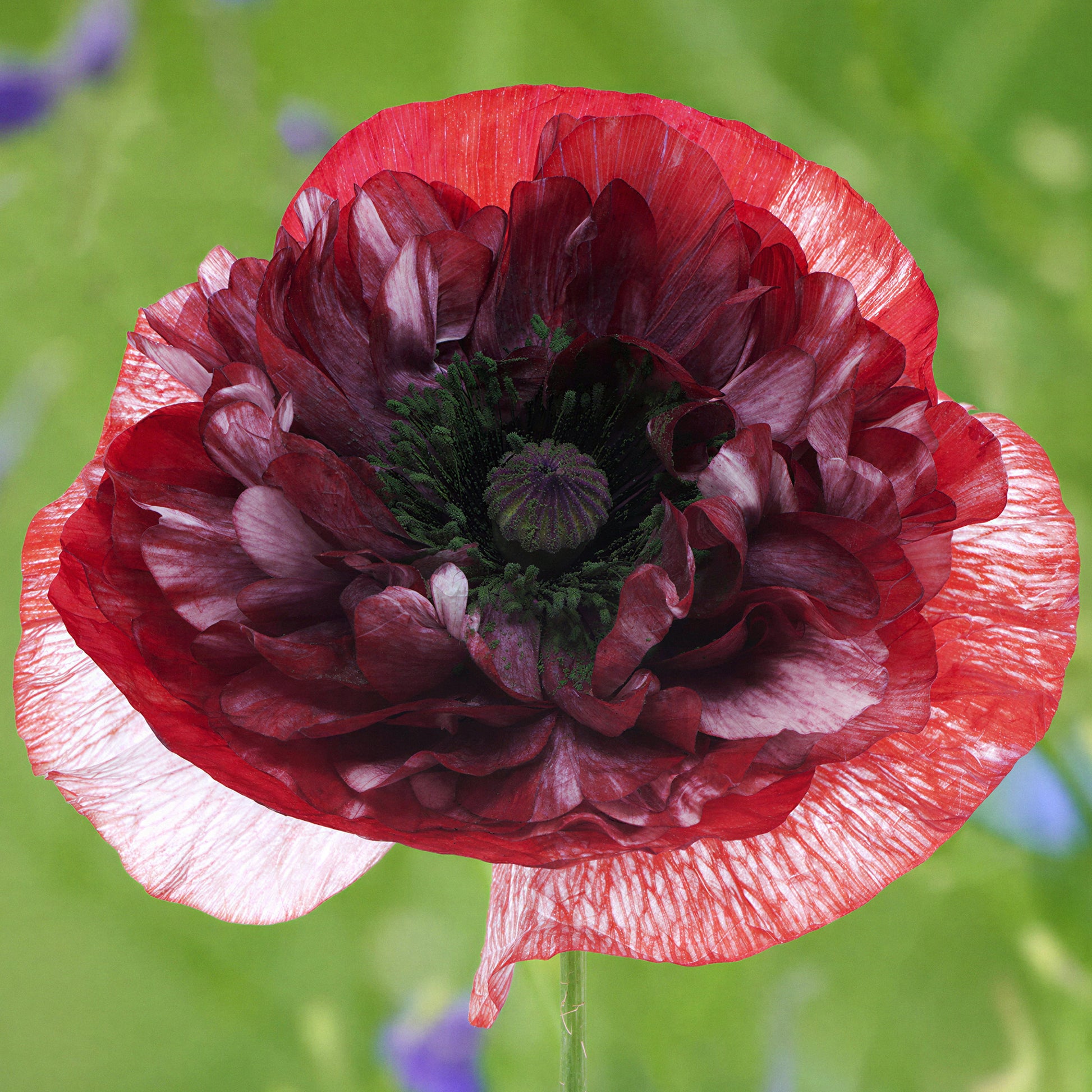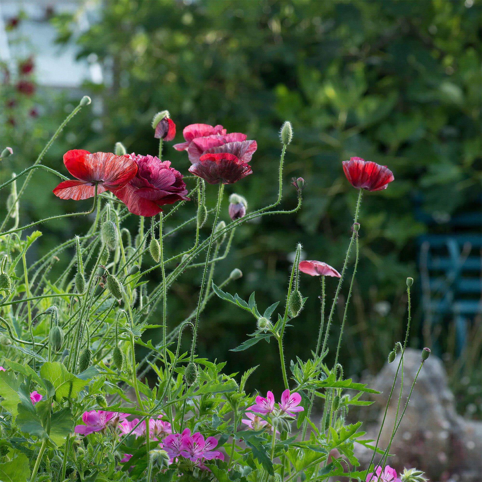 Poppy 'Pandora' is a strikingly elegant variety that brings deep, romantic tones to summer borders and wildflower gardens. Its large, semi-double to double blooms range from dusky rose to rich burgundy, often with silvery undertones and dark centres that add dramatic flair. With a soft, papery texture and graceful movement in the breeze, these flowers offer a moody, vintage charm that complements pastel companions beautifully.