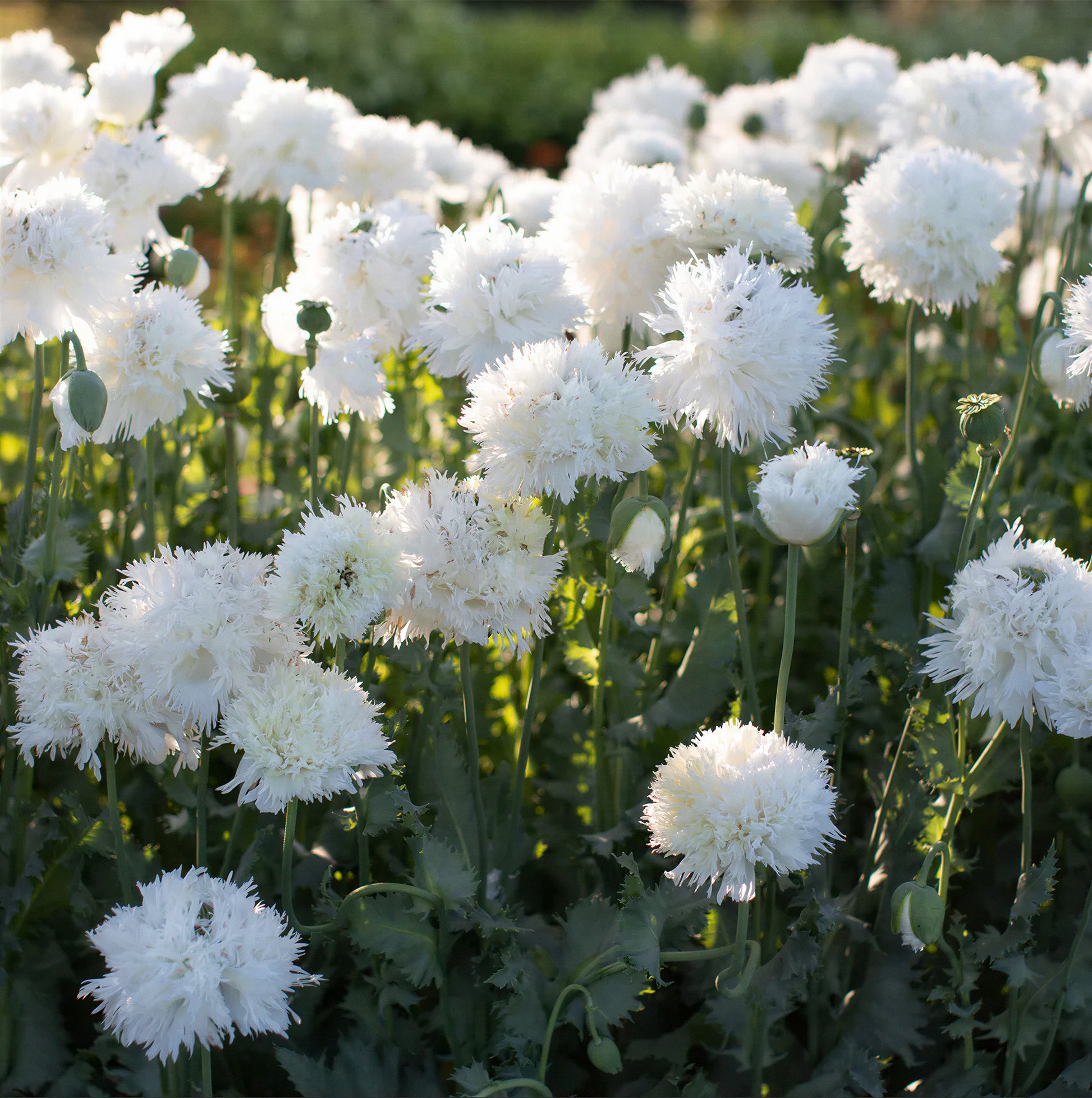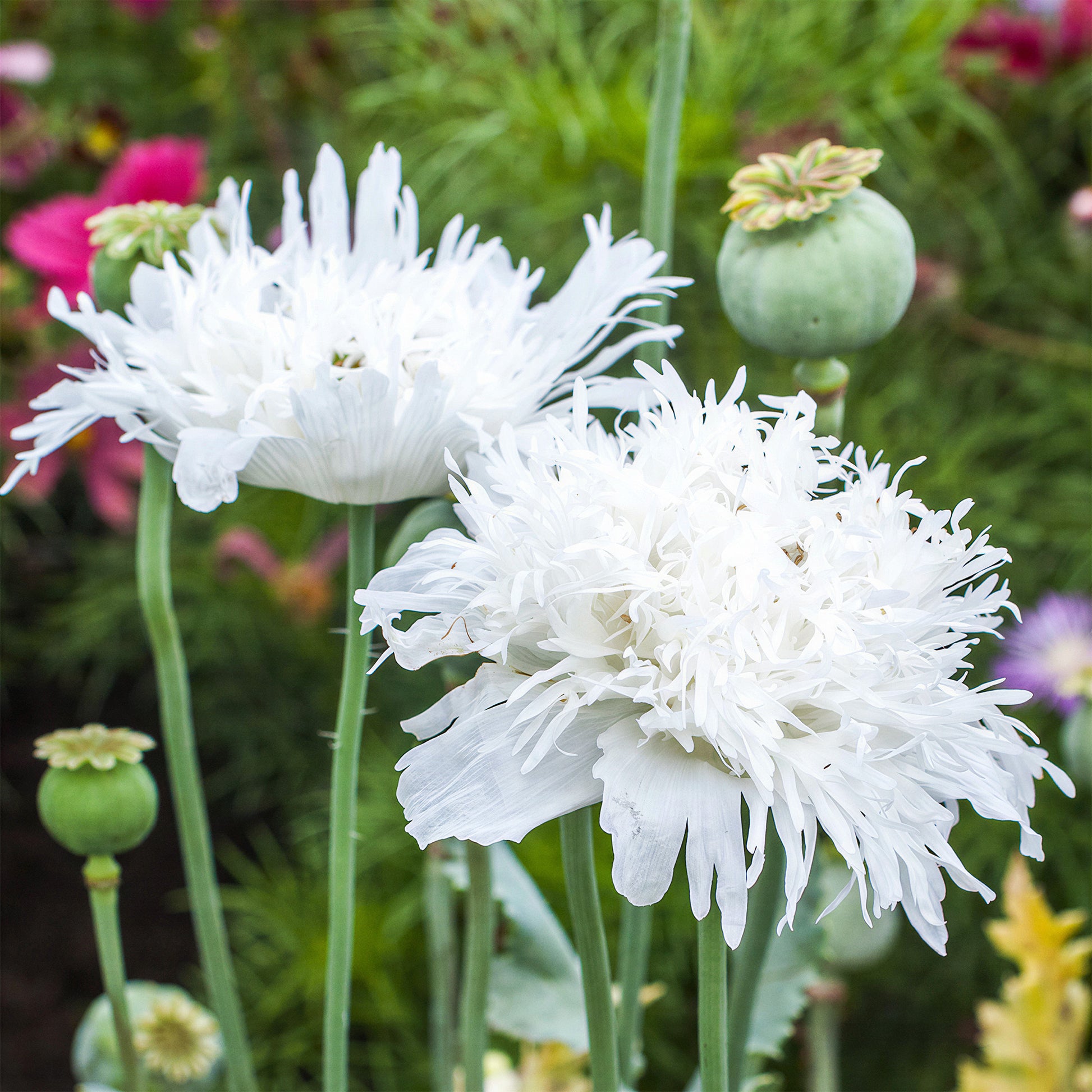 Poppy 'White Swan' is a refined annual that brings pure elegance to summer borders and wildflower meadows. Its large, ruffled blooms shimmer in crisp white, with soft papery petals that flutter delicately in the breeze. Standing tall on slender stems, each flower adds a serene, graceful presence to planting schemes and pollinator-friendly displays.