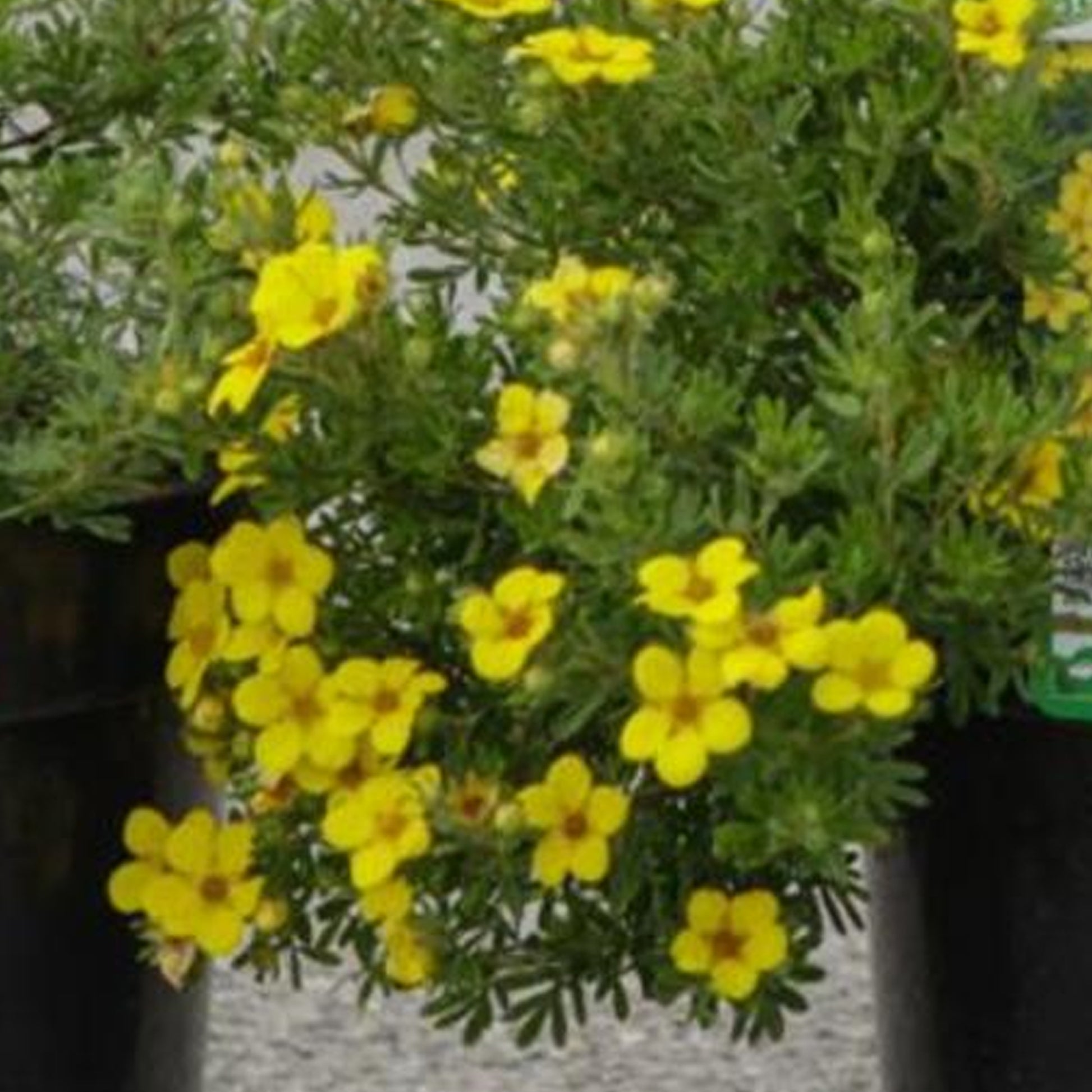 The Potentilla 'Bella Lindsey' is a deciduous plant with a compact habit. This variety features dark green foliage which contrasts beautifully with the large bright yellow flowers that appear in the Spring. The Potentilla 'Bella Lindsey' is very hardy and will thrive in most soil types. This particular plant will be best planted in a partially shaded area.