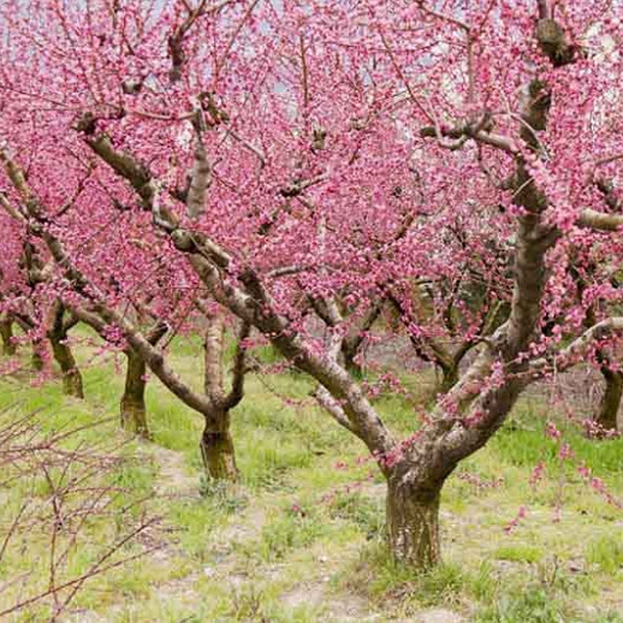 To plant a Prunus tree, choose a sunny or partially shaded position with fertile, well-draining soil. Dig a hole twice the width of the root ball and deep enough to accommodate it comfortably. Place the tree in the hole so that the root collar sits level with the soil surface, then backfill with a mixture of soil and organic matter, firming gently around the roots. Water thoroughly and apply a mulch layer around the base to retain moisture and suppress weeds, keeping the mulch a few centimetres away from the trunk to prevent rot. Stake young trees for added support in windy areas.
