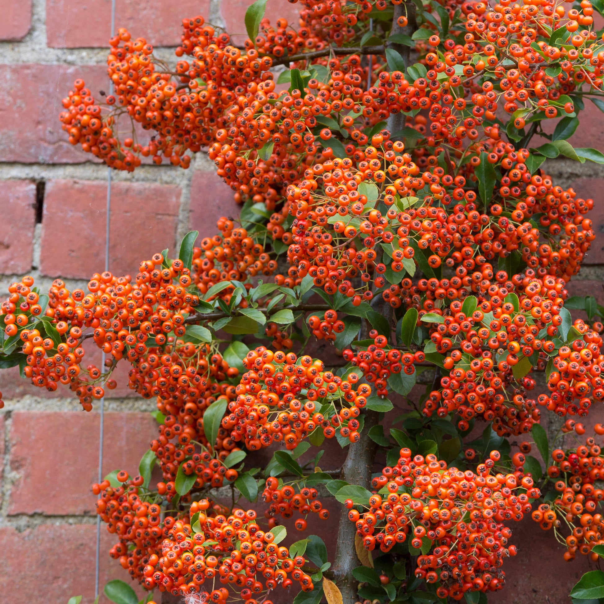 This versatile and robust shrub is ideal for a wide range of uses in garden design. Its strong, branching structure makes it perfect for training against a wall or fence, creating a magnificent vertical feature of foliage and fruit. Thanks to its dense growth and formidable thorns, it also forms a highly effective intruder-proof hedge that is both functional and beautiful. 'Saphyr Orange' is also a great choice for supporting wildlife, as its flowers attract pollinators and its berries offer a feast for birds through the colder months.