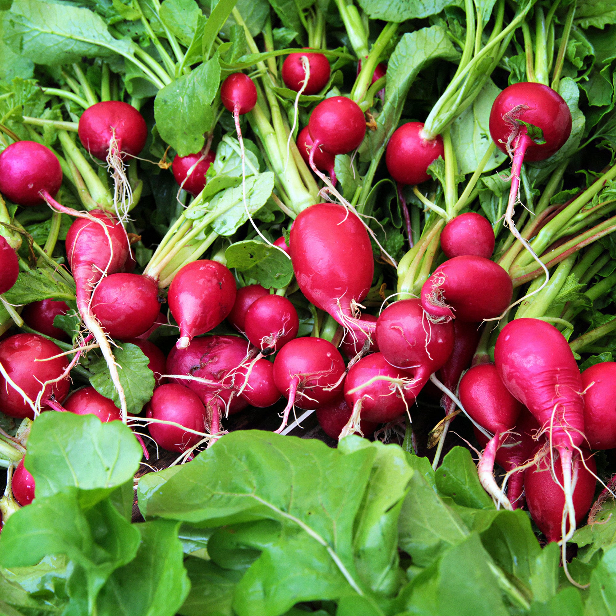 Sow seeds directly into well-drained soil from March to September in a sunny or lightly shaded spot. Make the drills shallow, around 1.5cm deep, and leave around 30cm between rows. Keep the soil moist and thin seedlings to prevent overcrowding, which helps roots develop evenly. Harvest from April to October, around 4 weeks after sowing, when the Radishes reach about 2–3cm across, for the best texture and taste.