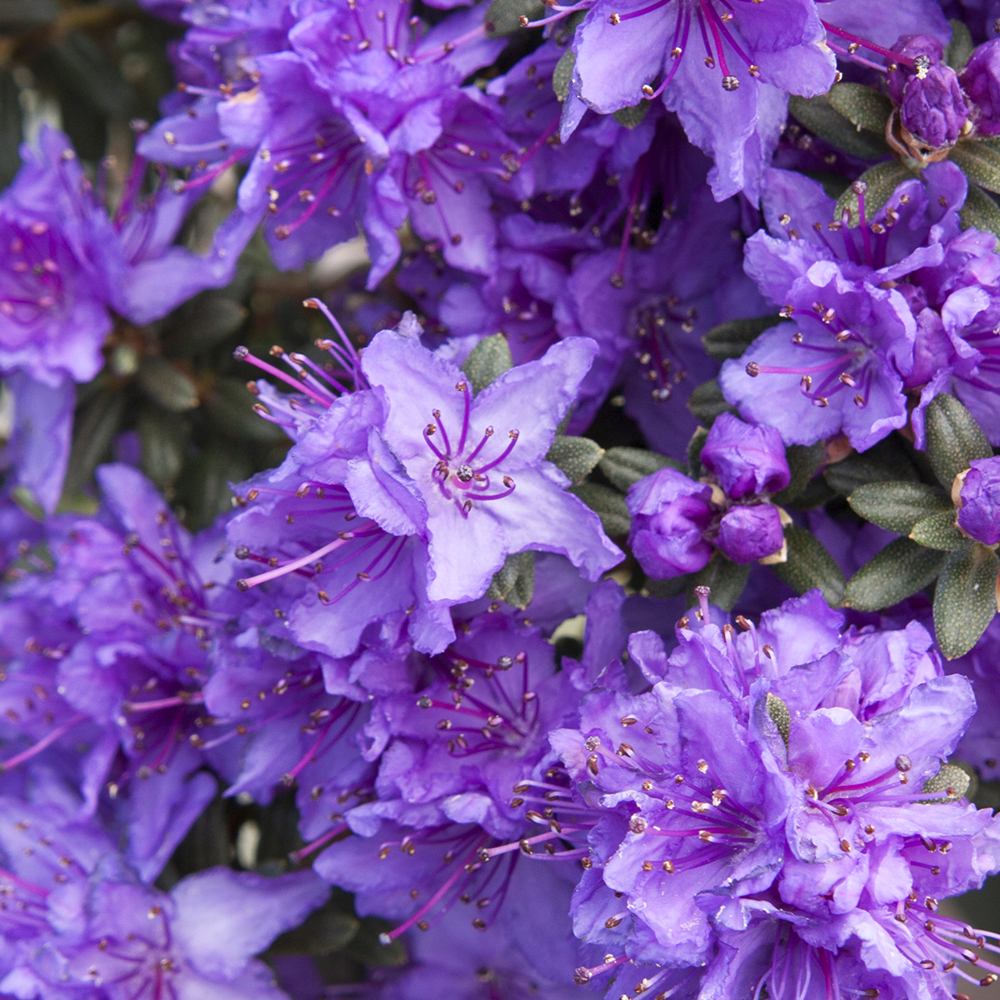 Rhododendron Impeditum is a hardy shrub with aromatic leaves that bear a lovely scent to go alongside stunning flowerheads. This variety grows to between 0.5 and 1m tall, meaning its striking, funnel-shaped purple flowers are impressive in many spots of the garden when they bloom in Spring. Its dark green foliage is evergreen, giving the plant year-round interest and ensuring its flowerheads are always joined by the perfect contrast.