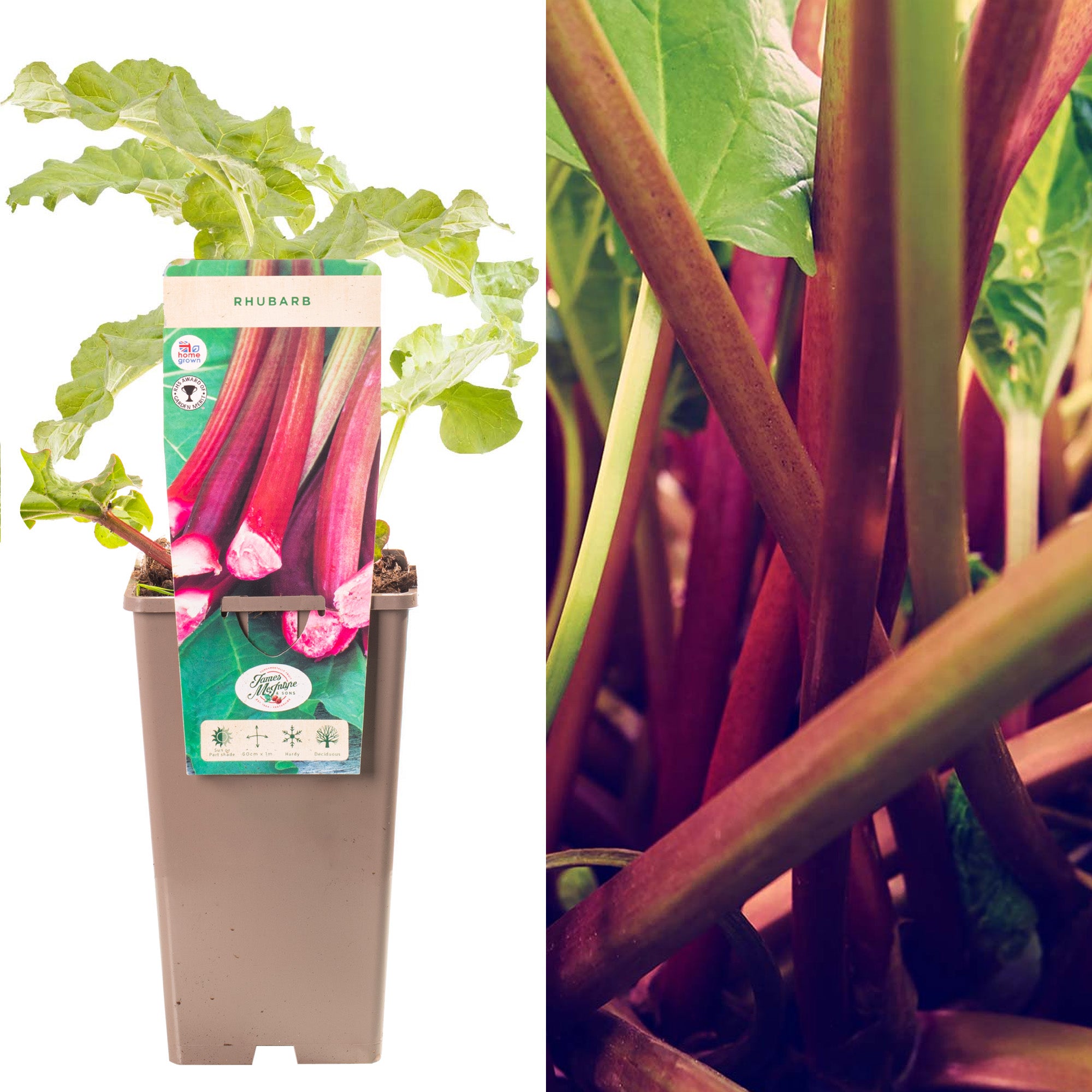 Our Rheum rhabarbarum Livingstone is a clump-forming perennial plant. Its vibrant, pink-red stems will begin to grow in Spring and continue through to Autumn. The tasty stalks of Rhubarb will be joined by bright green, wrinkled foliage in the same period, then cream flowers will bloom as the year progresses into Autumn. Rhubarb can be easily included in a variety of meals, including sauces, jams, pies and more.