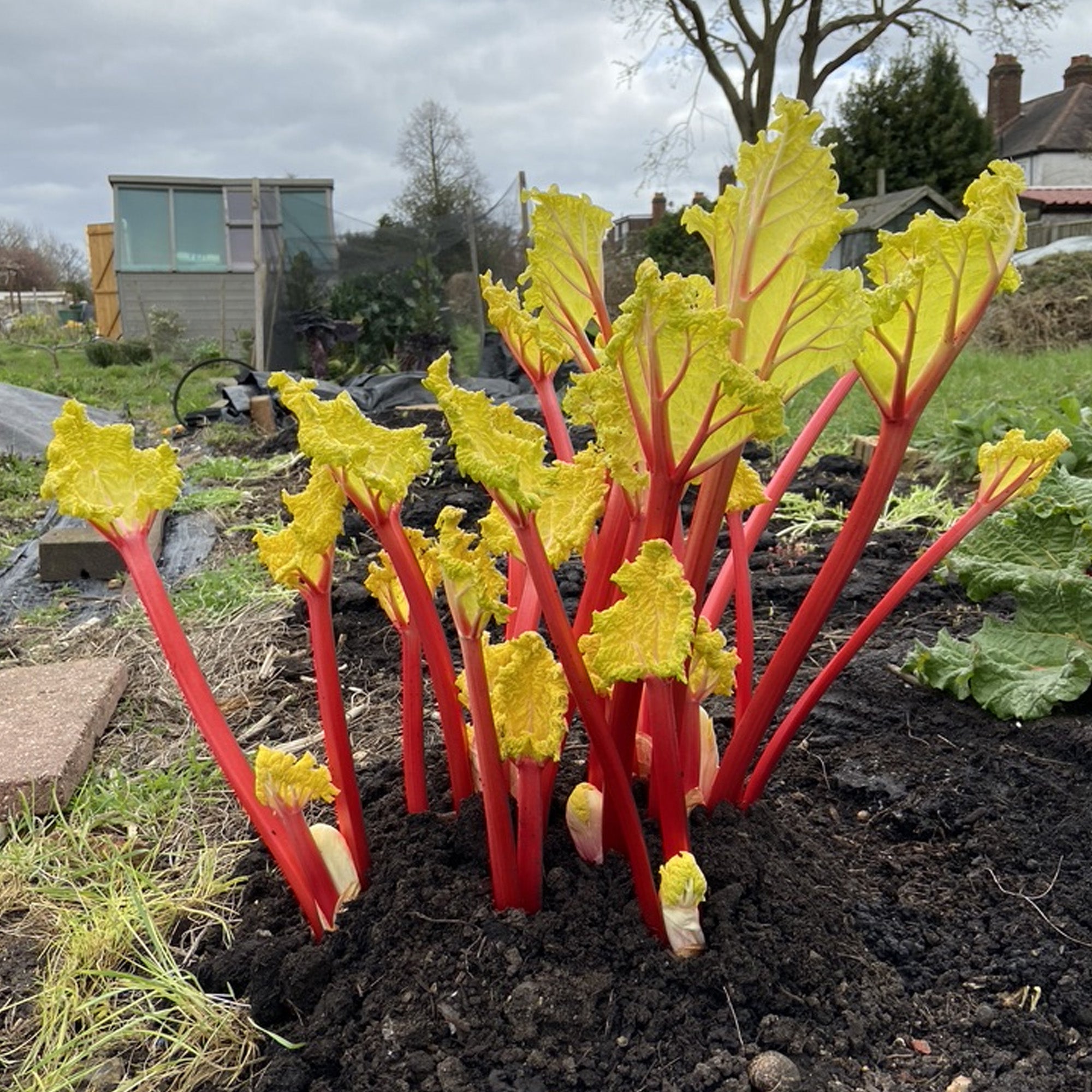 Don’t harvest Rhubarb in its first year to allow the plant to establish healthy roots.