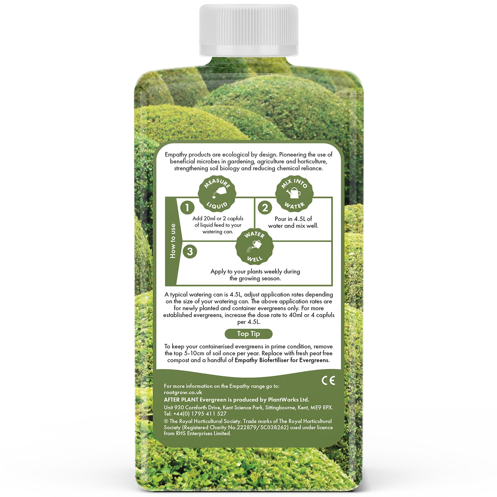 Rootgrow After Plant Evergreen Liquid Feed is specially formulated to support the long-term health of evergreen plants, trees, and shrubs. Enriched with beneficial mycorrhizal fungi, it helps establish stronger root systems, improves nutrient uptake, and promotes dense, vibrant foliage all year round.