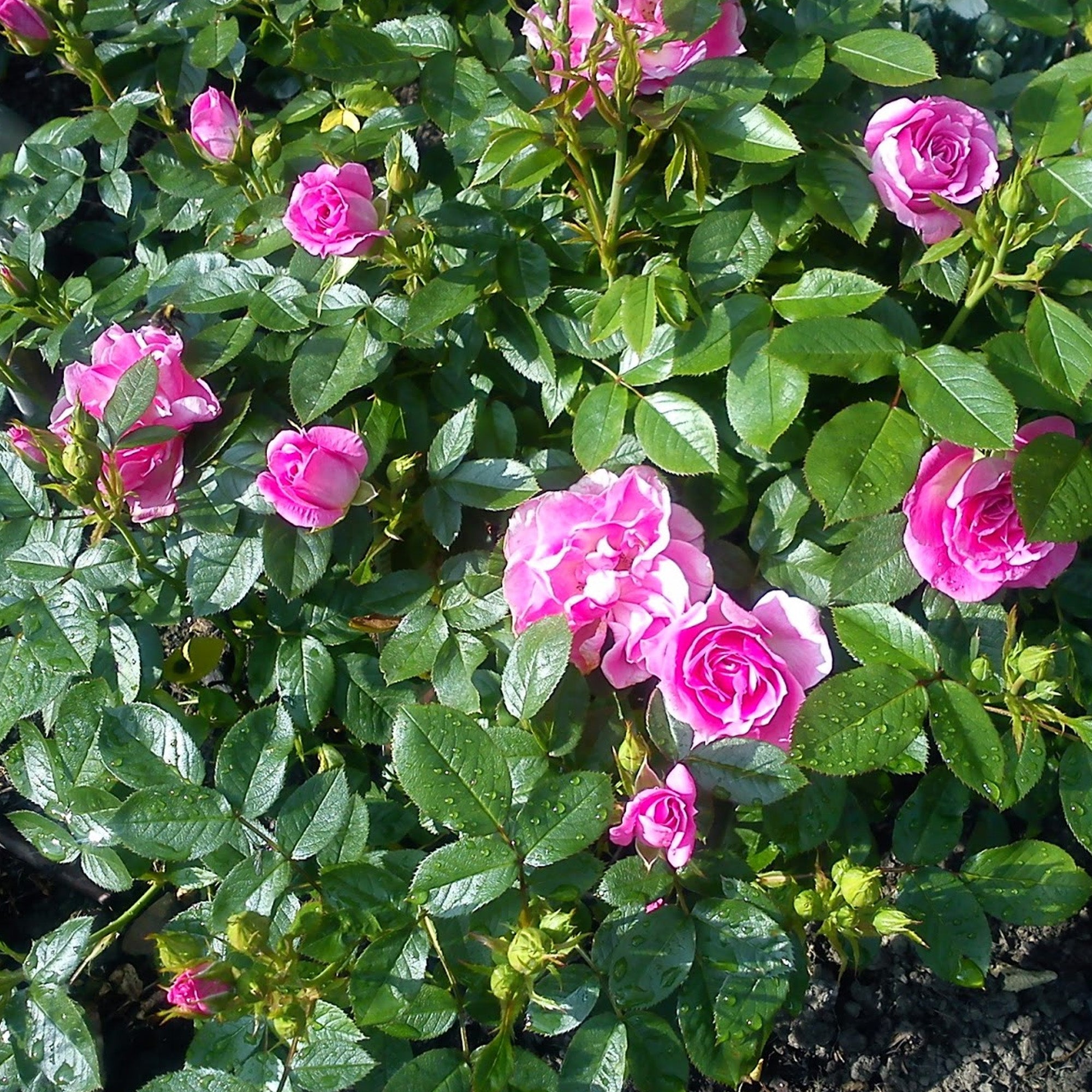 Water roses deeply at the base 1–2 times per week, depending on weather, to keep the soil consistently moist but not soggy. Avoid overhead watering to prevent fungal diseases. Early morning is best to allow leaves to dry quickly. Mulch helps retain soil moisture and reduce watering needs.