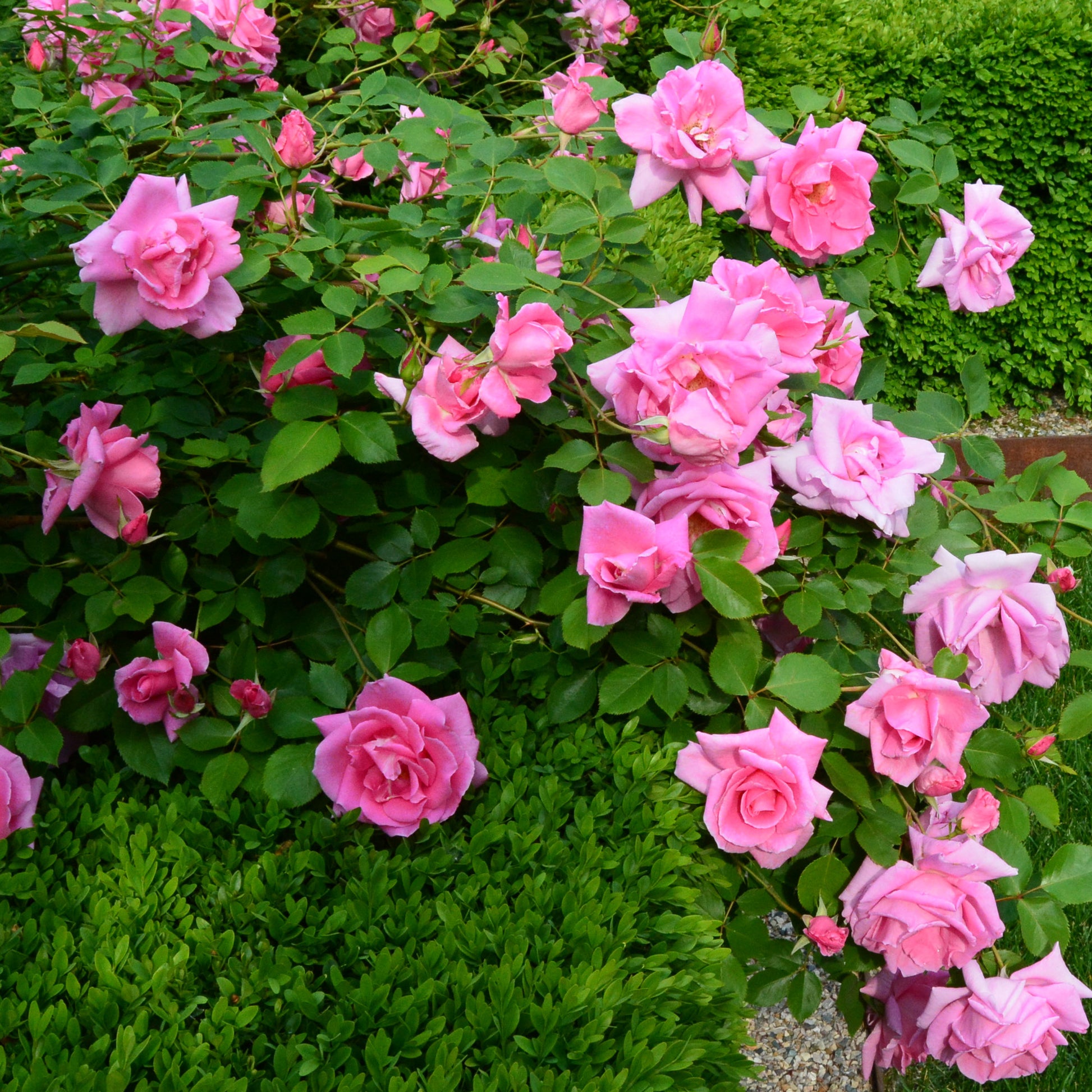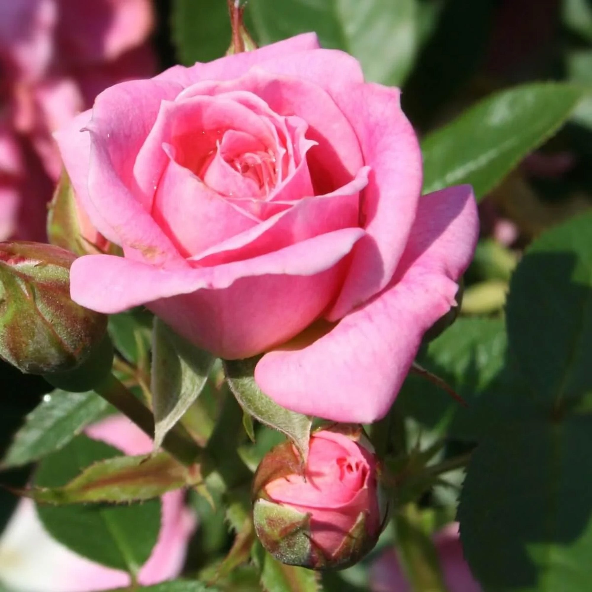 Shiny mid-green leaves emerge in spring, providing the perfect backdrop for the large, frilly, double roses that bloom in summer. Appearing as early as June and repeat-flowering into September, the eye-catching pink roses have a light scent and will be the envy of your neighbours all summer long.