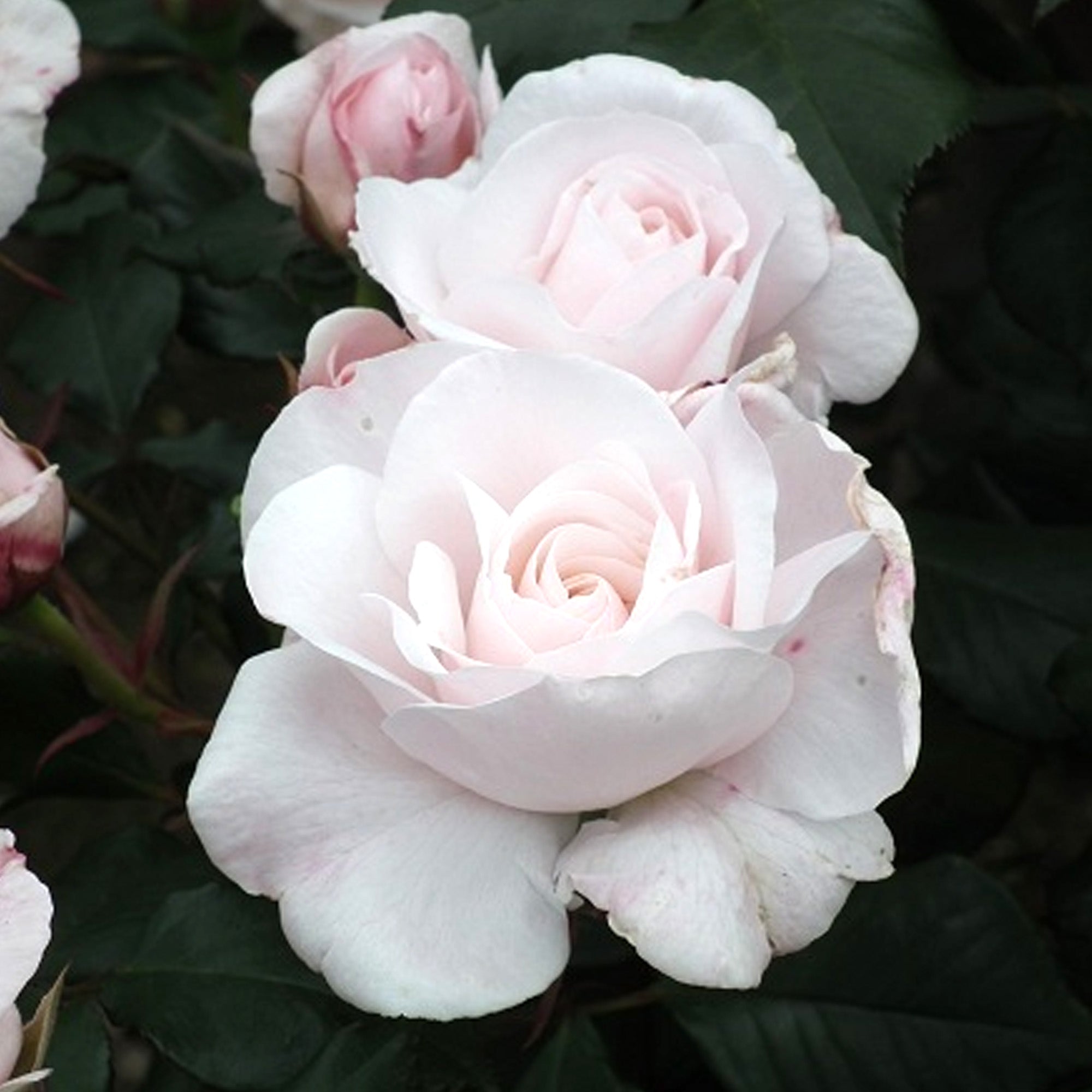 Glossy dark-green leaves emerge in spring, providing the perfect backdrop for the masses of fragrant roses that bloom in summer. Appearing as early as June and repeat-flowering through autumn and into November, the pale coral-to-blush-pink blooms will be the envy of your neighbours all season long.